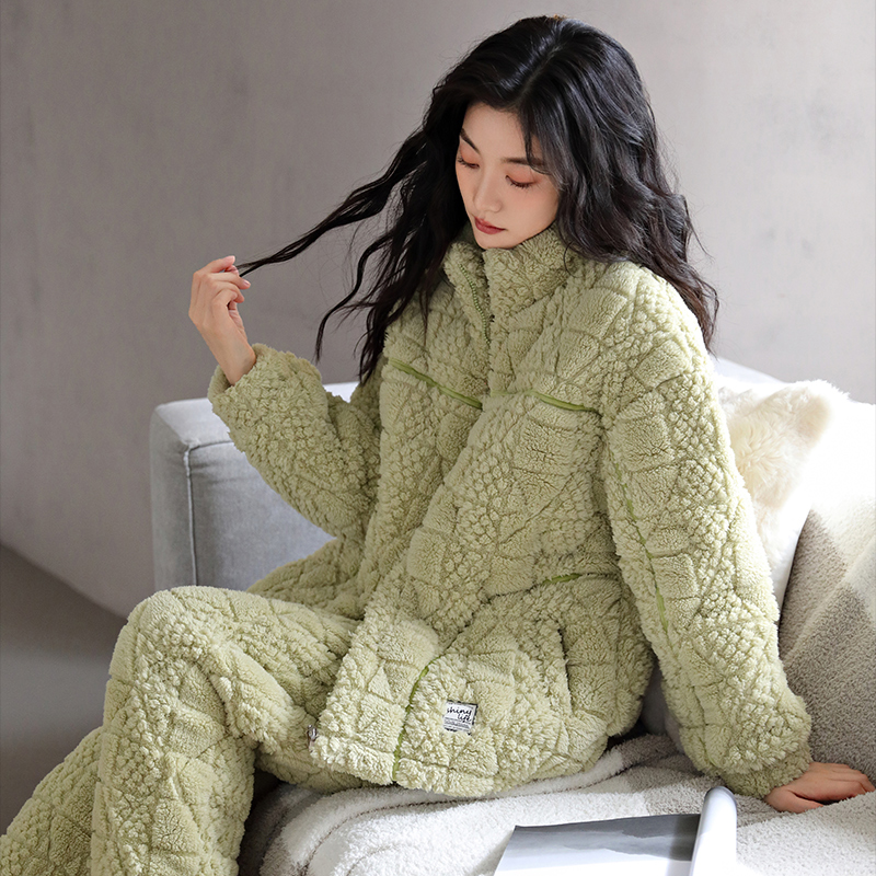 古今睡衣女冬季 家居服 珊瑚绒三层夹棉加绒加厚保暖女士棉袄秋冬款