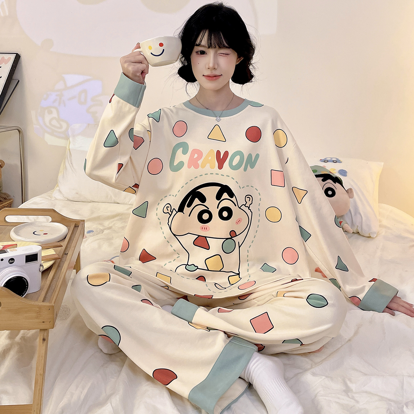 宽松休闲大码 芬腾女士睡衣春秋季 套装 套头秋款 全棉家居服 纯棉长袖