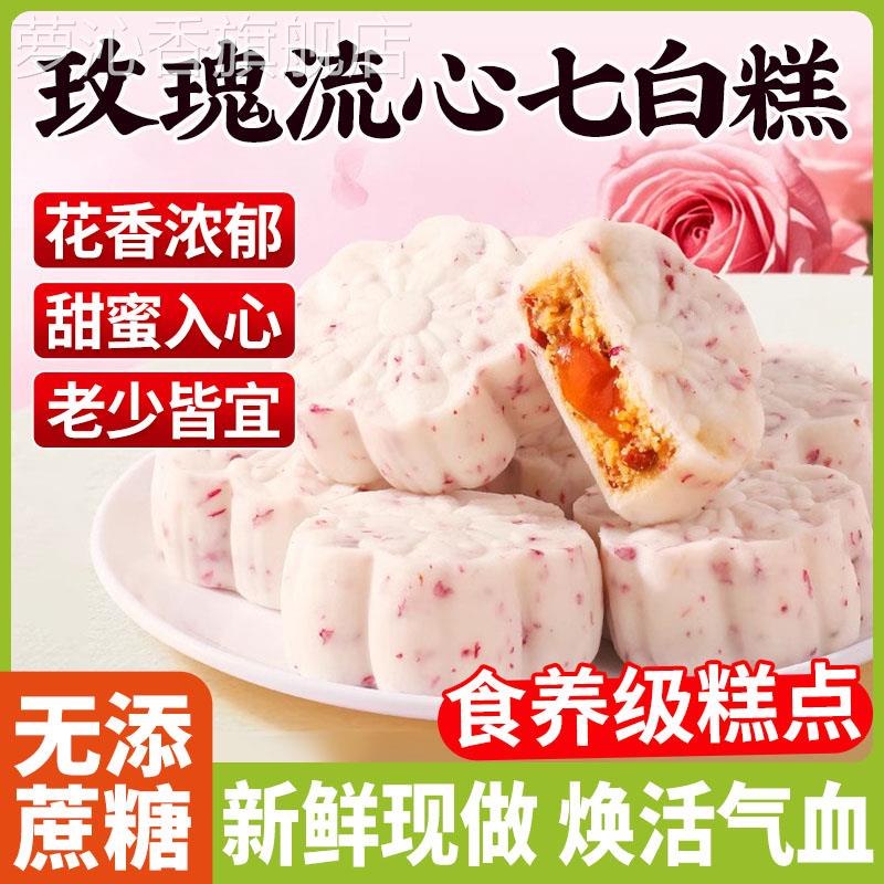 玫瑰流心七白糕鲜花饼中式 无蔗糖糕点软糯营养早餐休闲下午茶零食