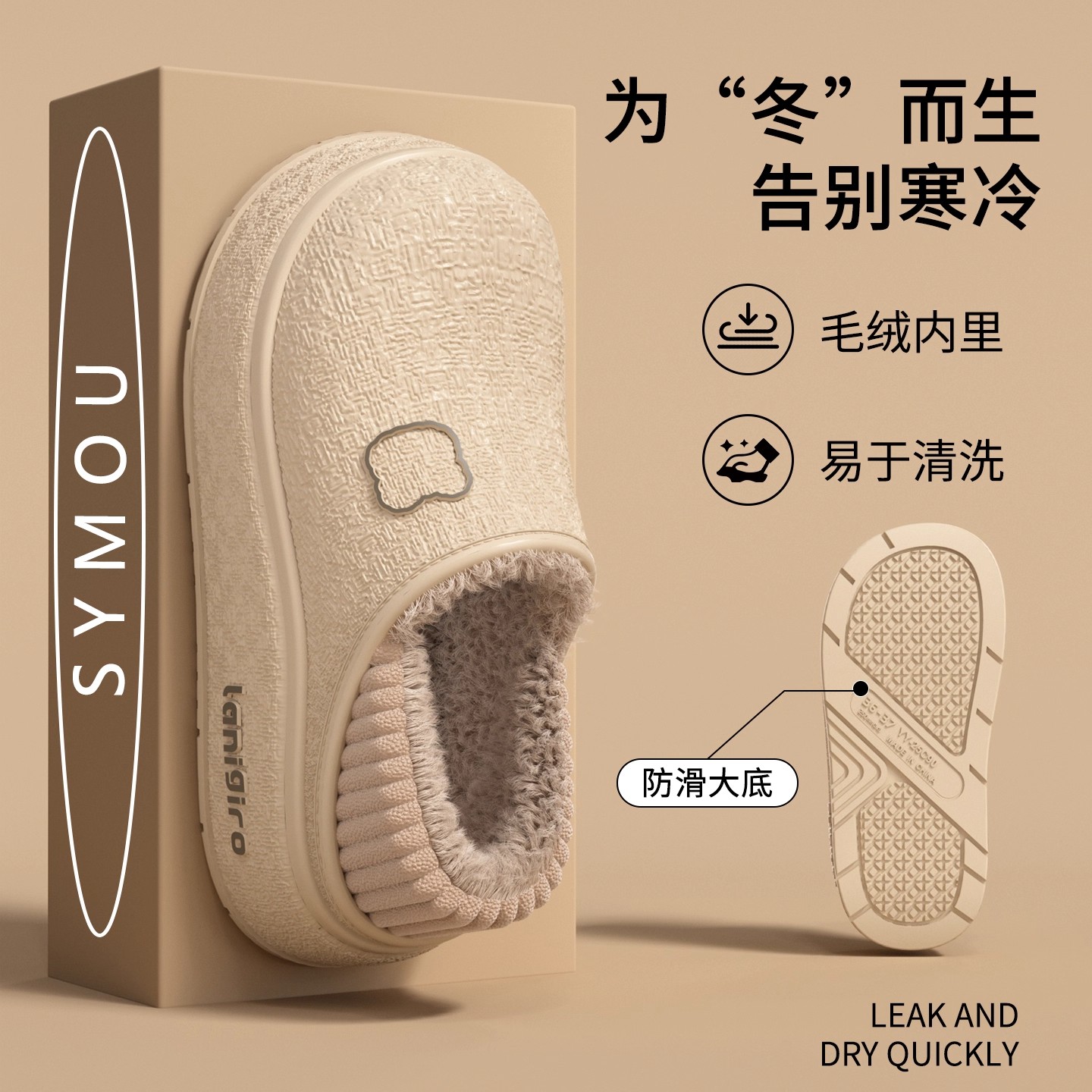 男款 冬季 室内家居厚底防水外穿包跟情侣棉鞋 女2025新款 保暖棉拖鞋