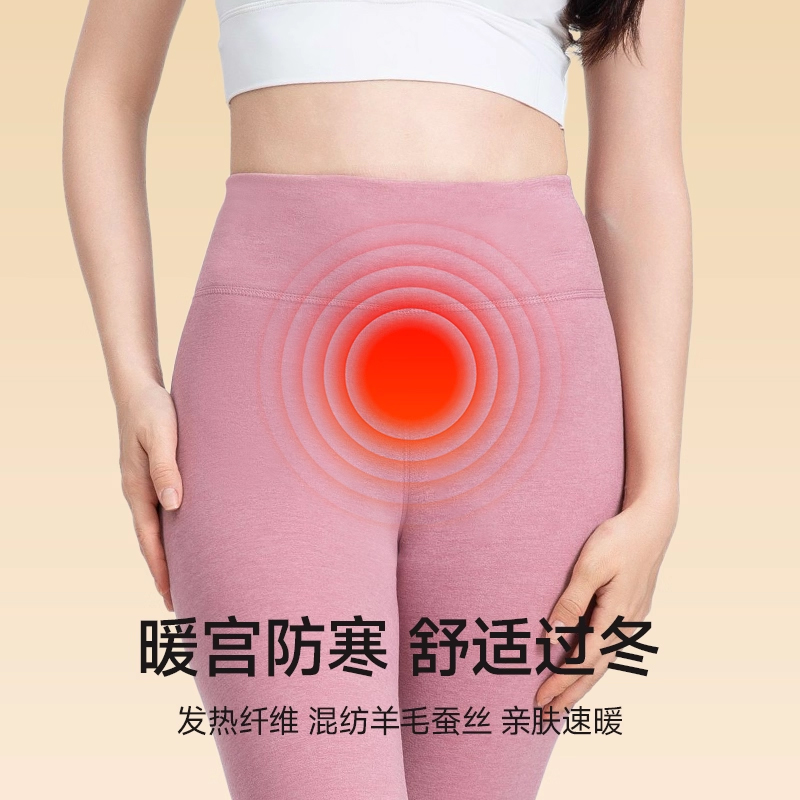 加绒加厚羊绒蚕丝高腰打底裤 德绒保暖秋裤 女无痕发热内穿秋衣冬季