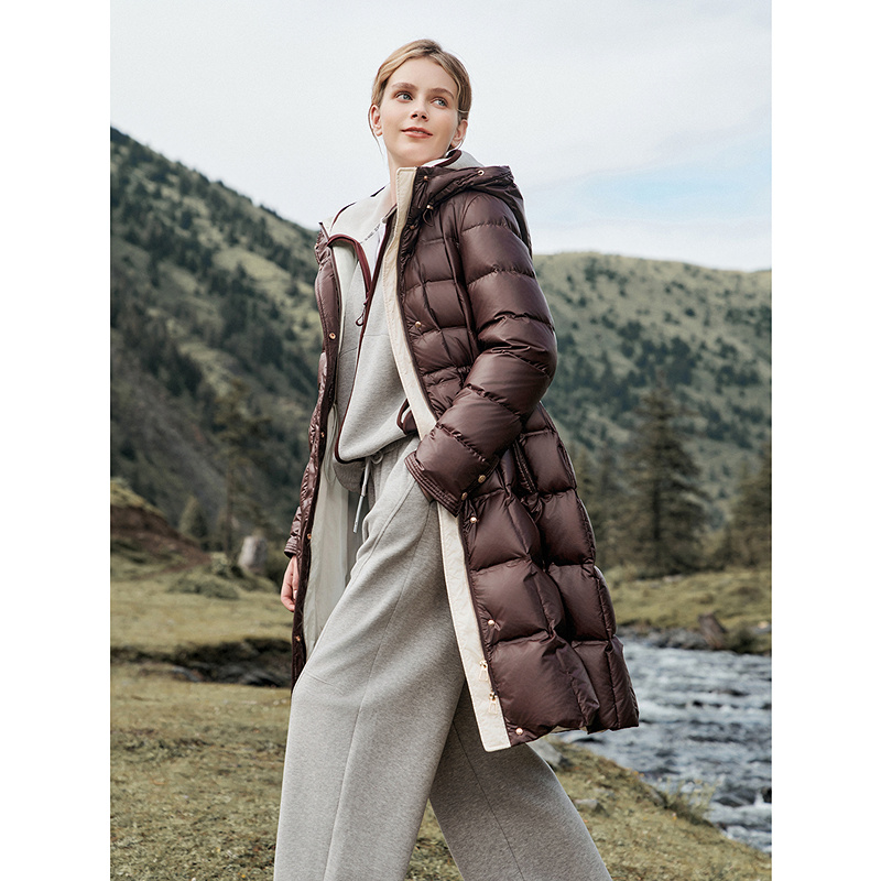 连帽宽松保暖时尚 中长款 休闲短外套F 新款 鸭鸭羽绒服女2025年冬季