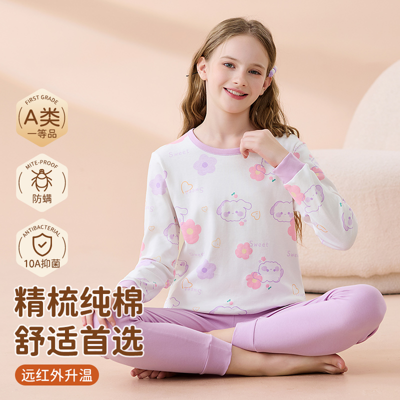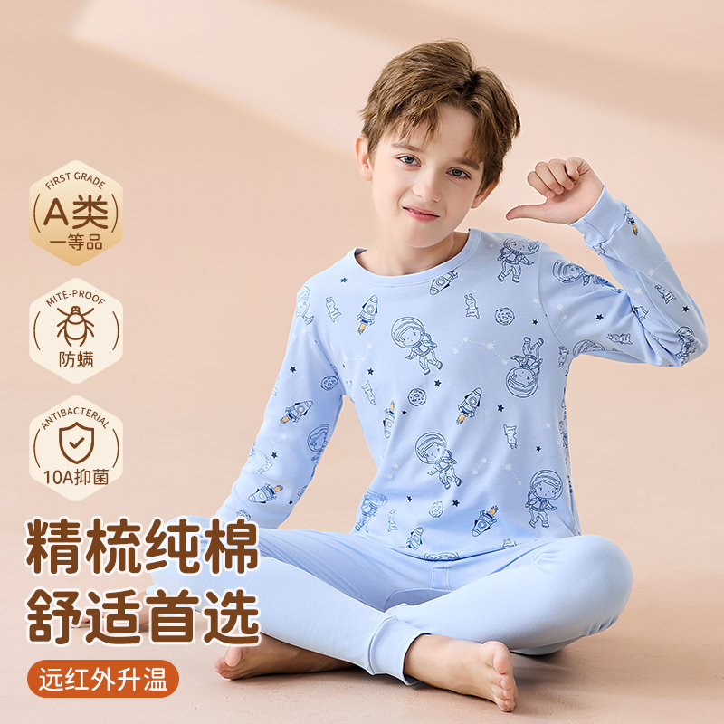 新 男童中大童儿童纯棉全棉保暖内衣棉毛衫 青少年学生秋衣秋裤 套装