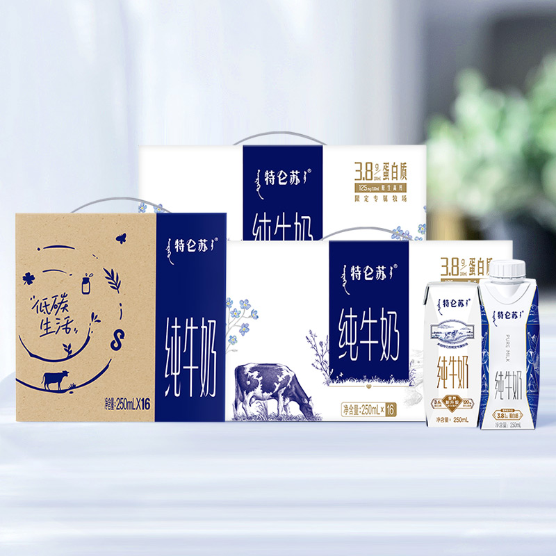 16盒优质营养早餐奶牛奶 蒙牛特仑苏纯牛奶250ml 百亿补贴