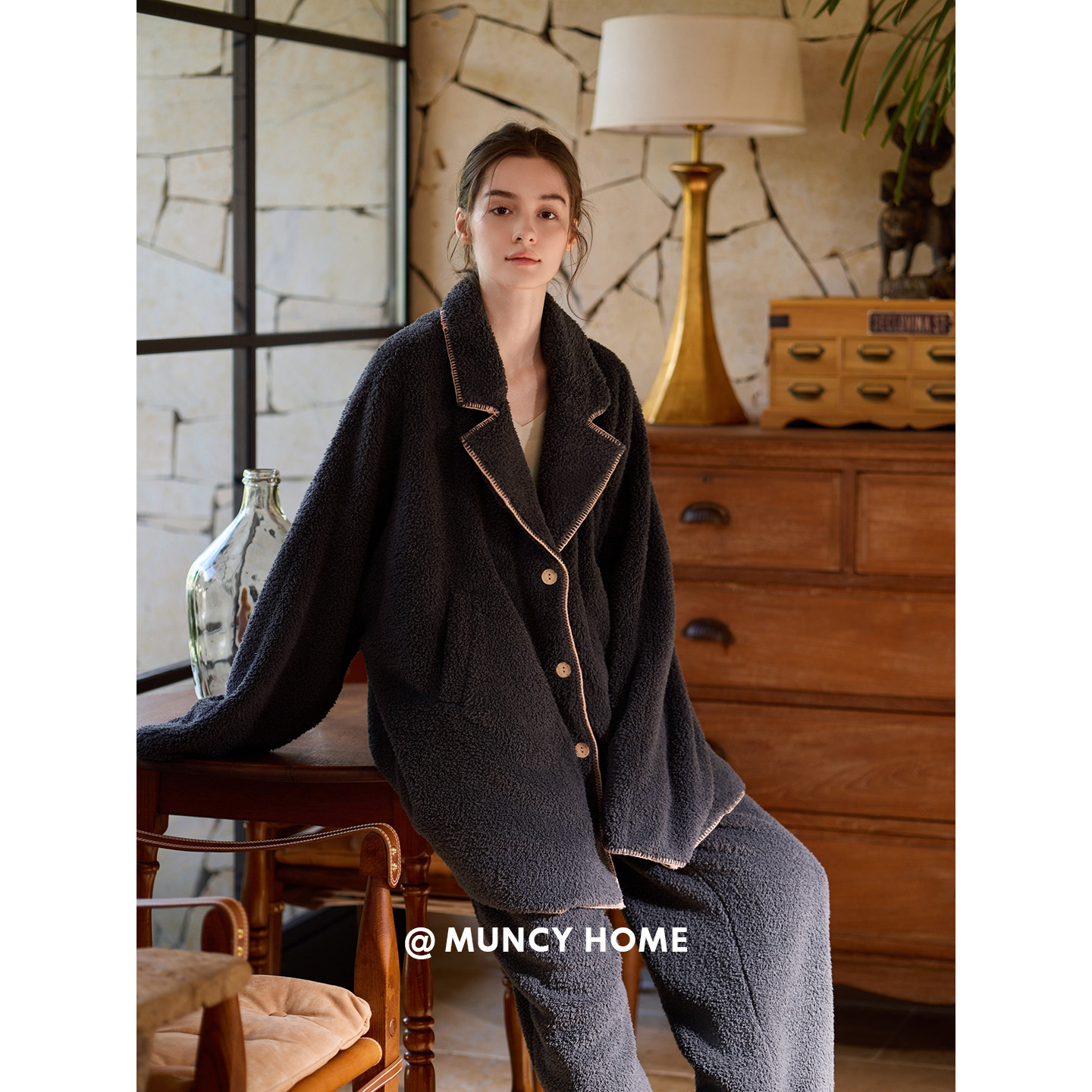 海岛绒可外穿家居服 简约薄款 睡衣女秋冬季 保暖珊瑚绒女士睡衣套装