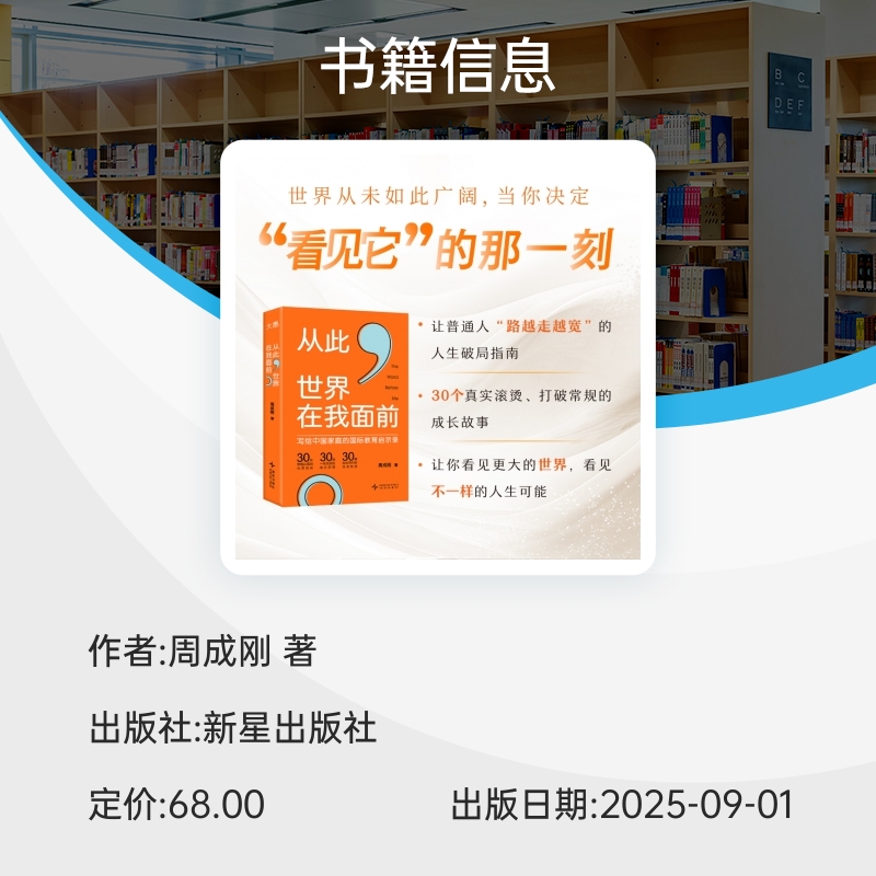 国际教育启示录 人生破局指南 新东方周成刚著 从此 成长故事 写给中国家庭 30个真实滚烫打破常规 博库网 世界在我面前