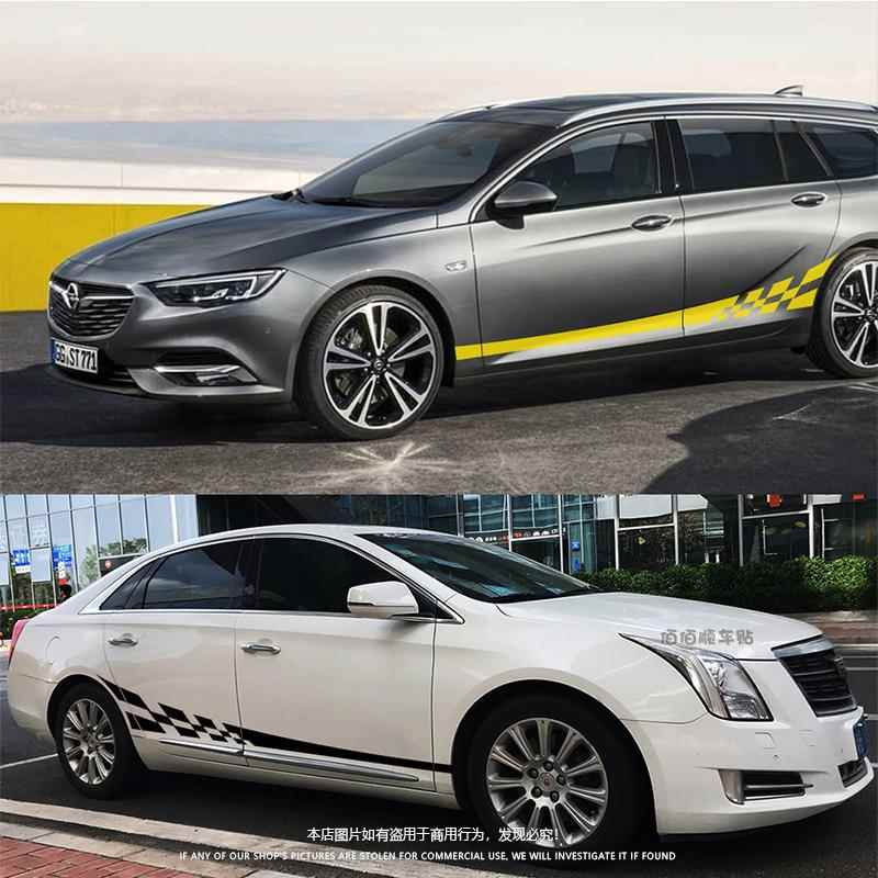 汽车侧裙拉花车贴个性 饰贴纸通用车门格子旗划痕遮挡贴画 运动改装