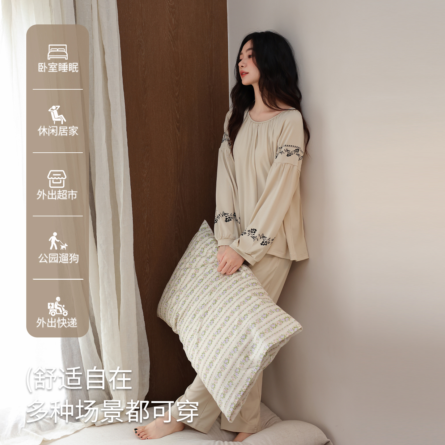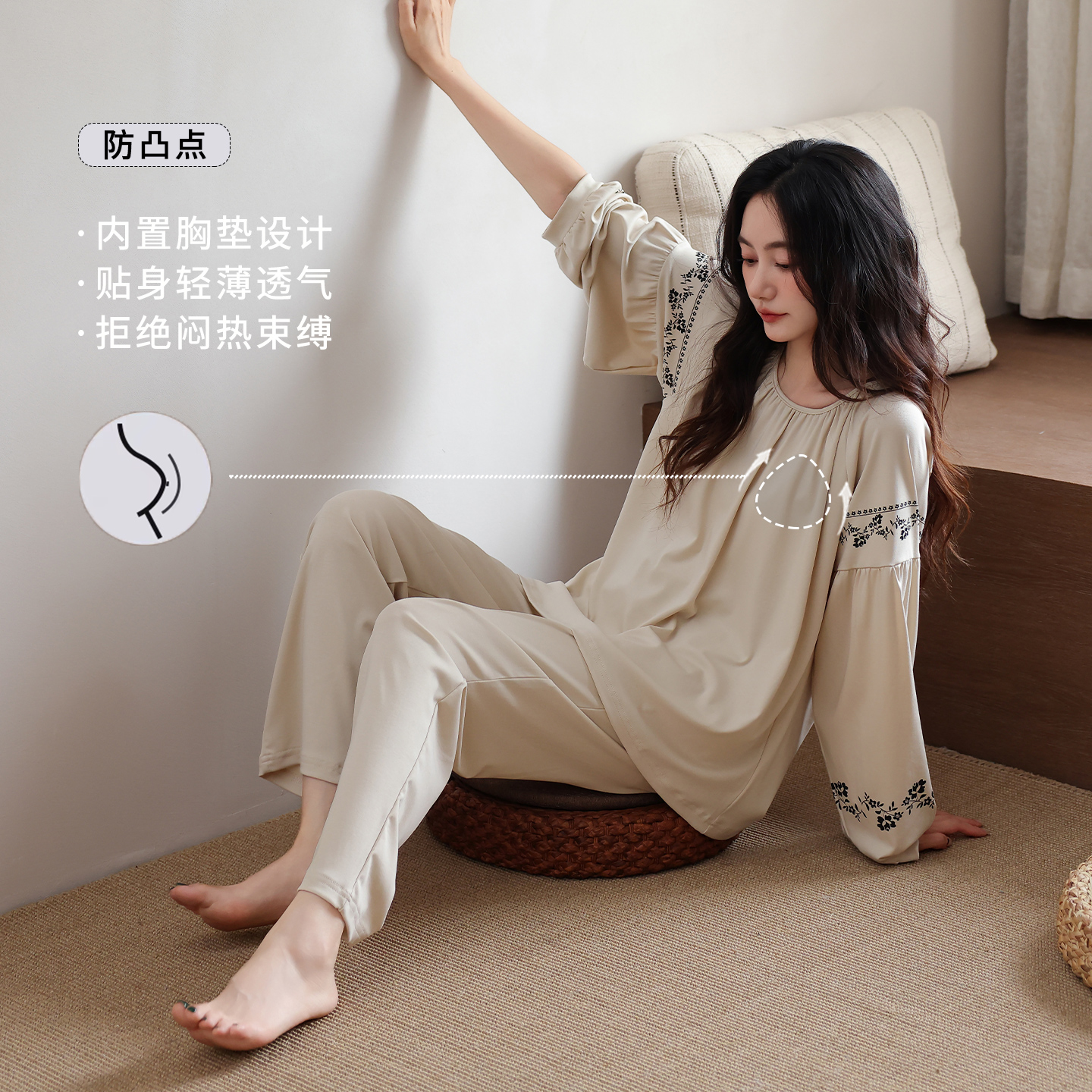 带胸垫长袖 2025新款 大码 冬季 睡衣女款 防凸点外穿家居服套装 春秋季