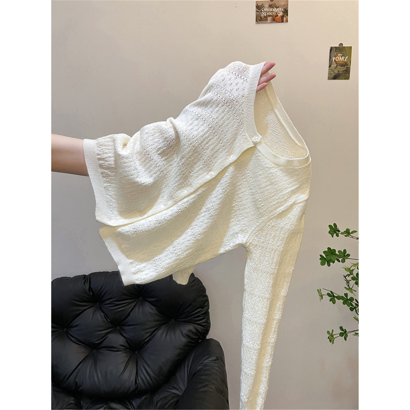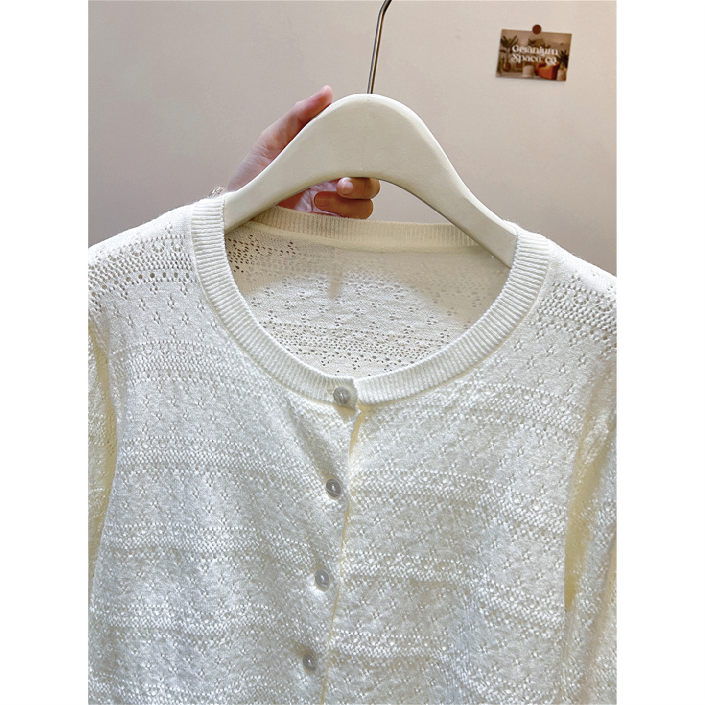 气质镂空针织开衫 2025法式 上衣高级感外搭毛衣女短外套 新款 早秋季