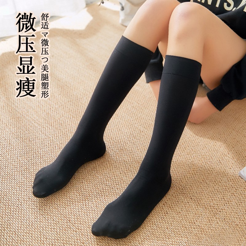 压力小腿袜女秋冬强压显瘦腿jk袜子黑色半截过膝中高筒韩版 长筒袜
