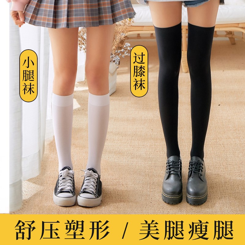 压力小腿袜女夏季 强压黑色过膝长筒袜配裙子中筒jk高筒瘦腿袜春秋