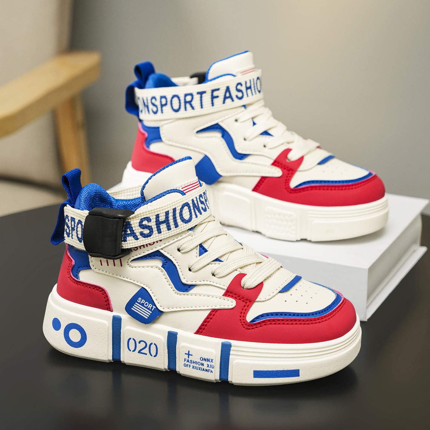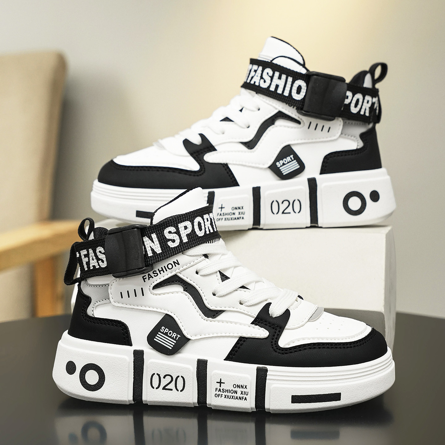 学生中大童增高运动潮鞋 高帮男鞋 青少年休闲百搭潮流平底小白板鞋