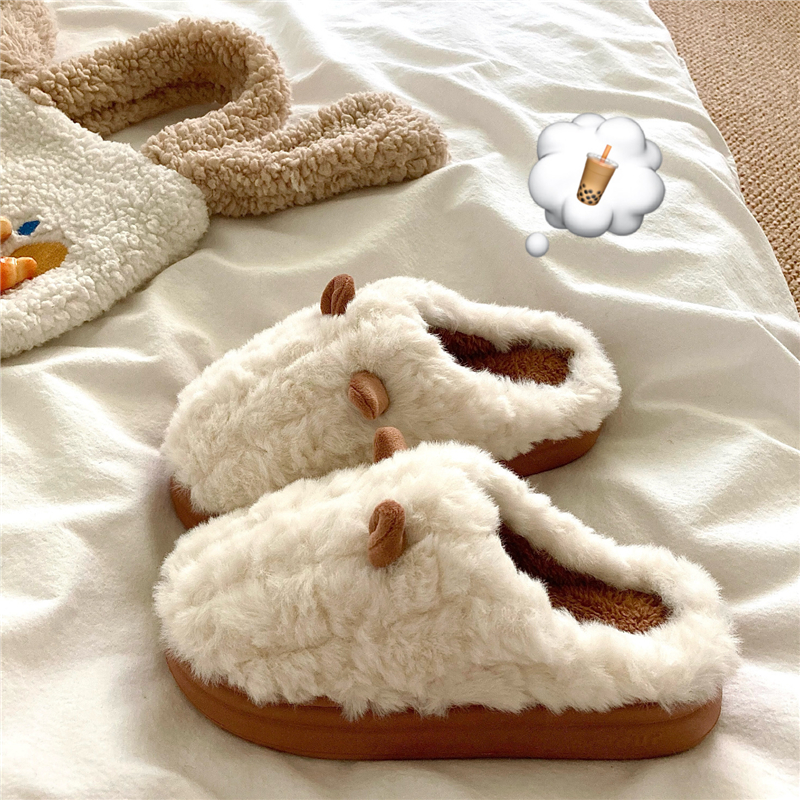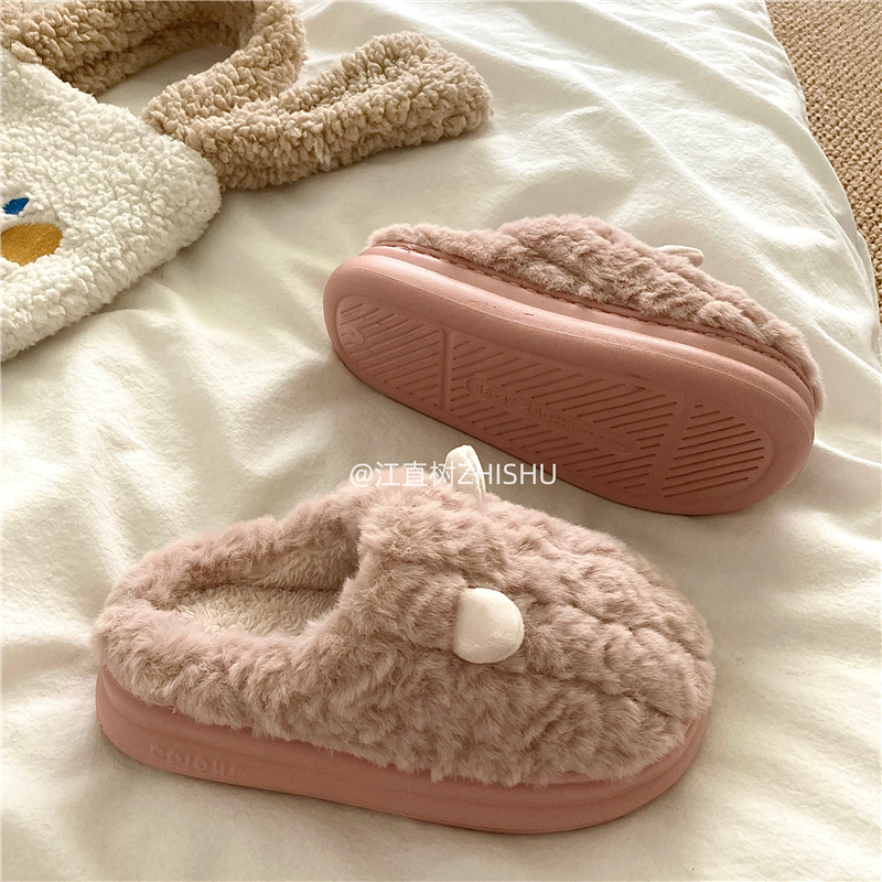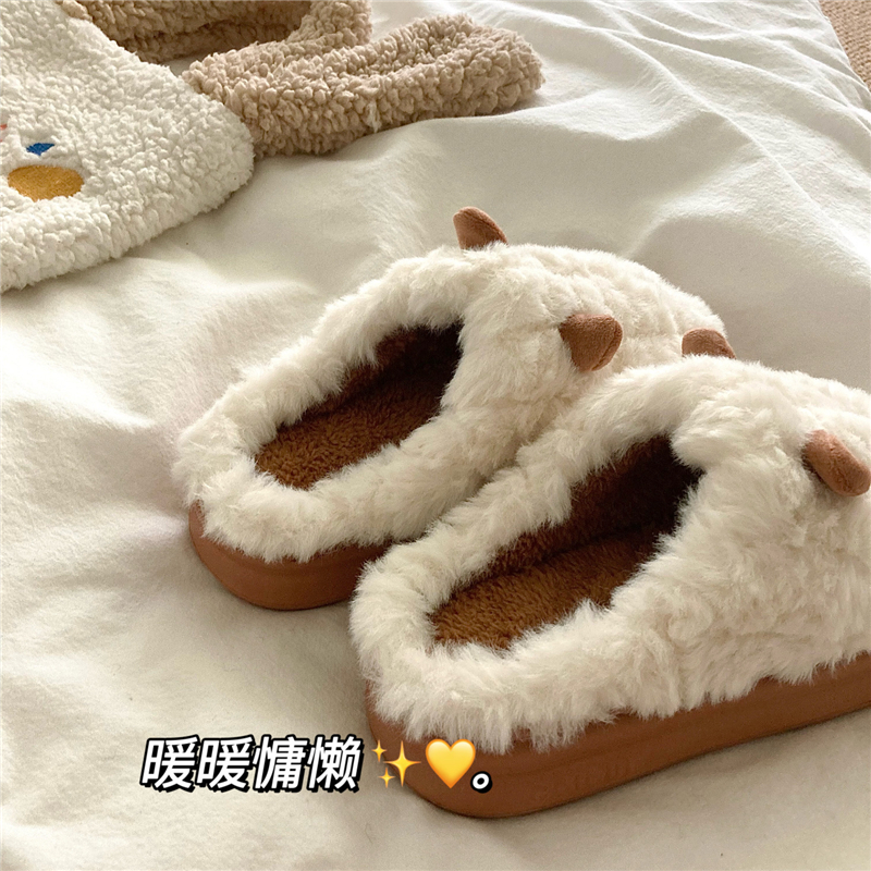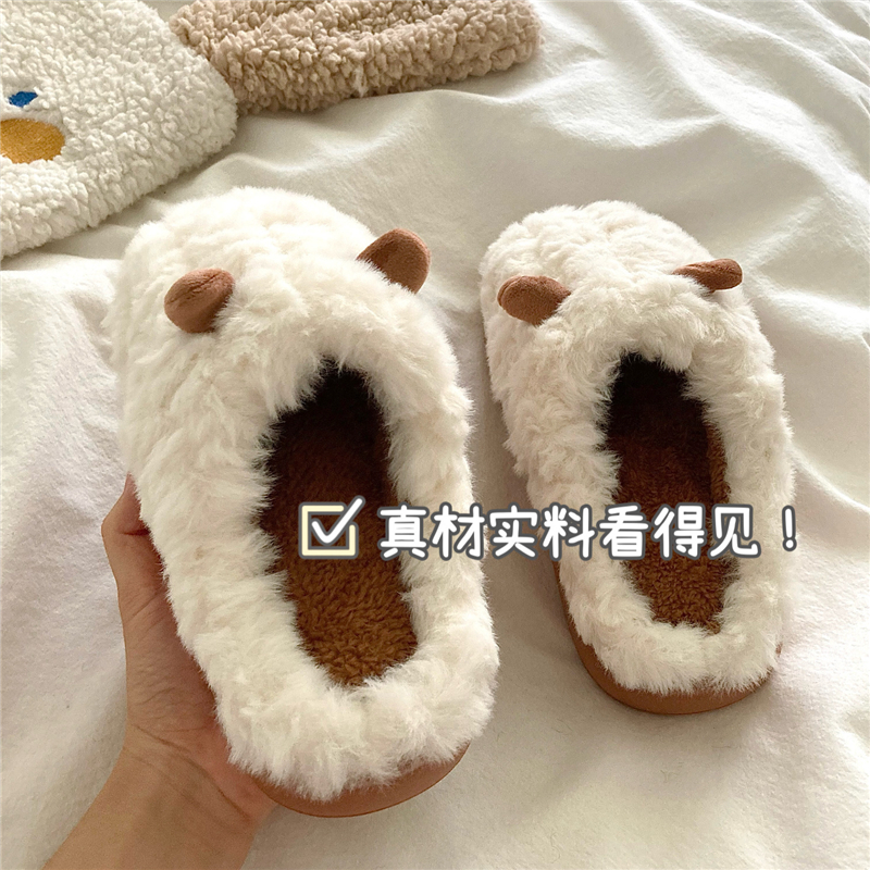 室内家居厚底防滑可爱情侣防毛毛棉拖 包跟新款 棉拖鞋 女士冬季