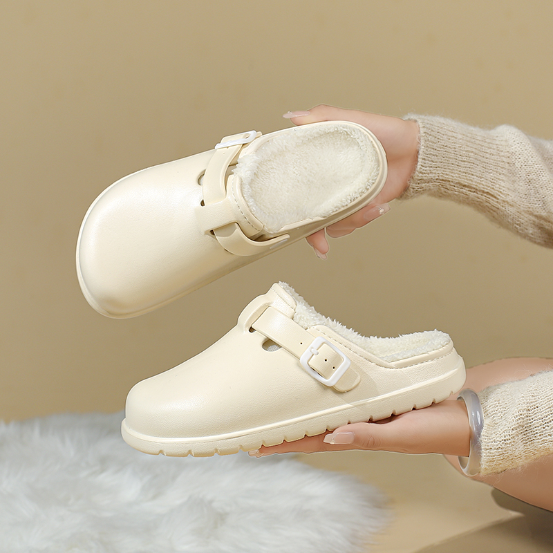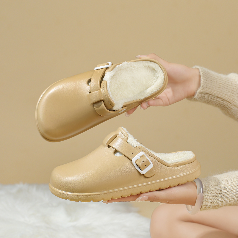 张凌赫同款 厚底增高可外穿预 百丽厚岛吐司2代包头冬加毛勃肯拖鞋