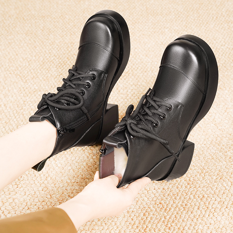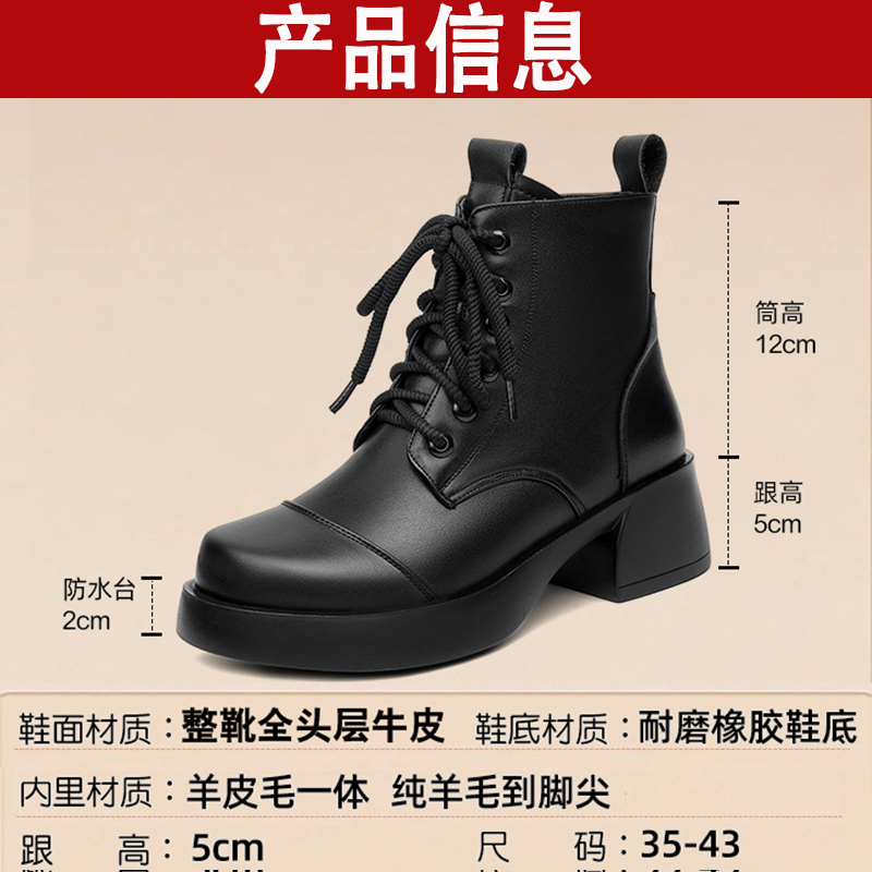 黑色增高靴子女时尚 新款 休闲皮面短靴 2025秋季 环球厚底马丁靴女款