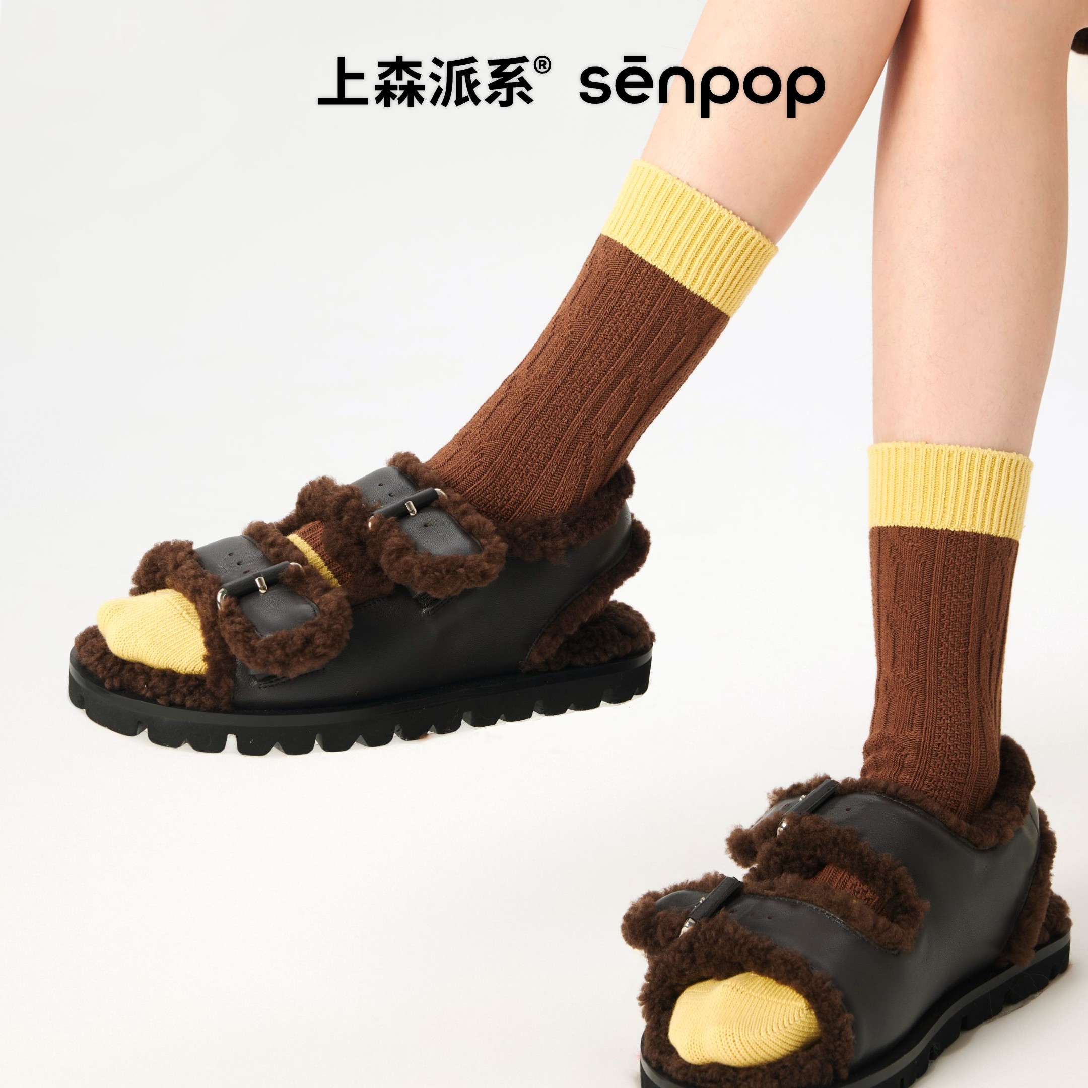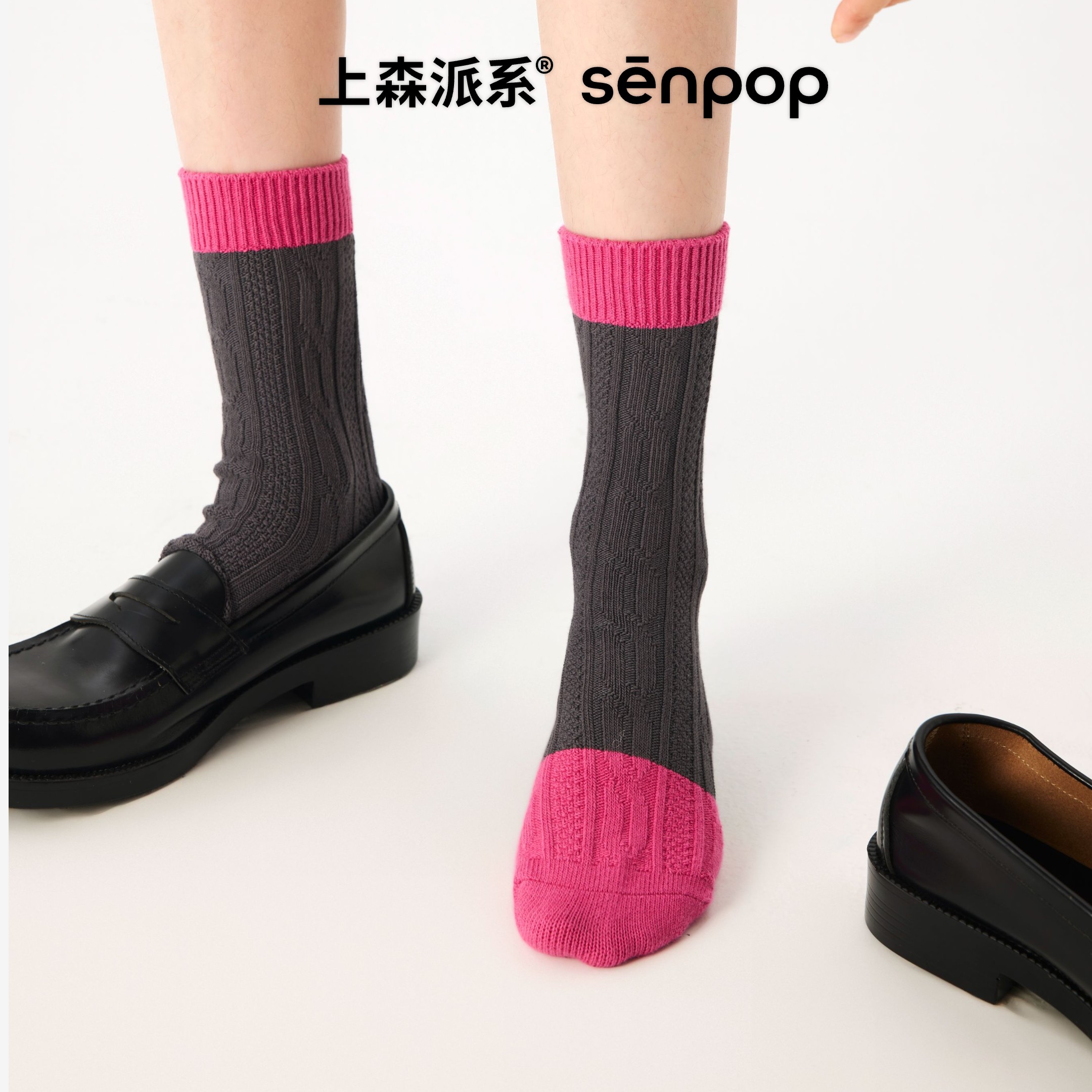 上森美拉德堆堆袜女袜棉袜秋冬款 小腿袜 中筒袜灰粉拼色百搭勃肯鞋