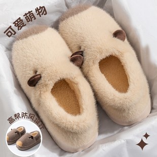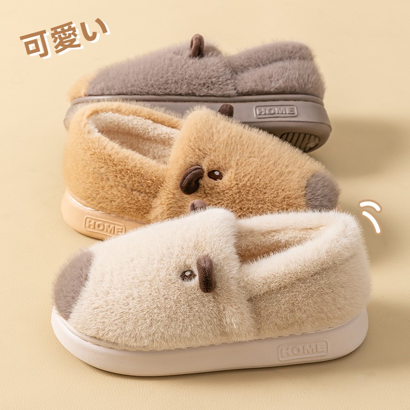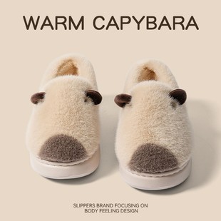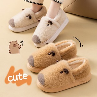 包跟棉拖鞋 女士居家用情侣秋冬保暖毛毛可爱卡皮巴拉毛绒软底棉鞋