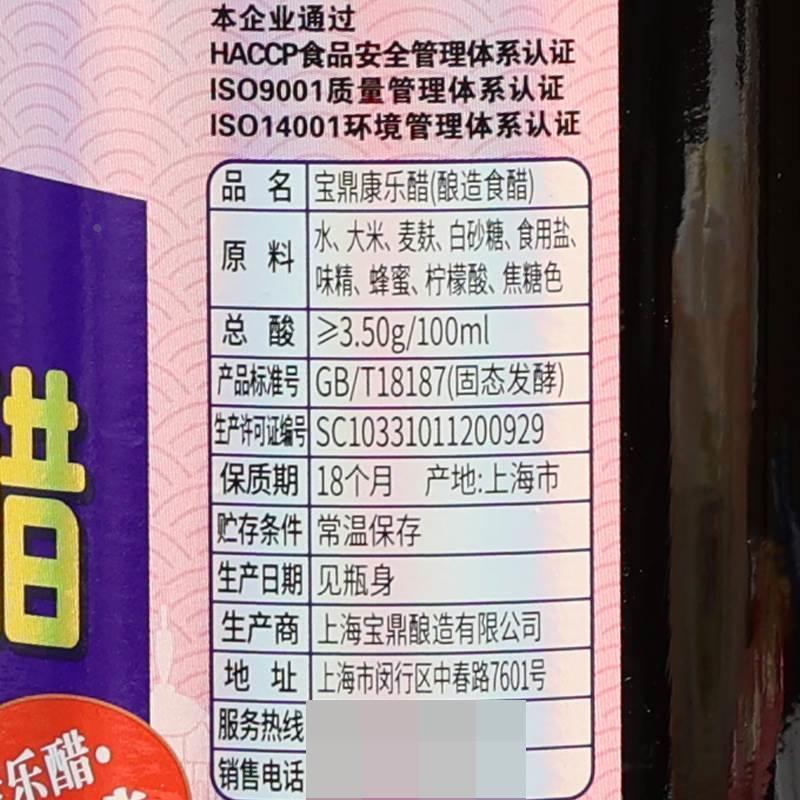上海宝鼎天鱼康乐醋500ml 凉拌饺子专用调料虾蟹食用醋 家用小瓶装