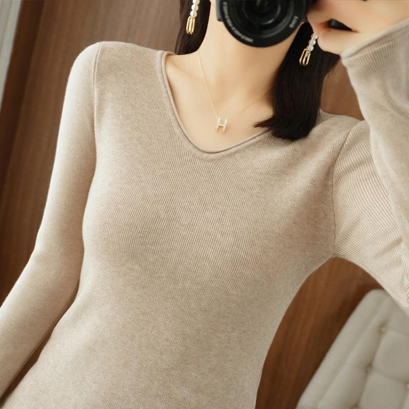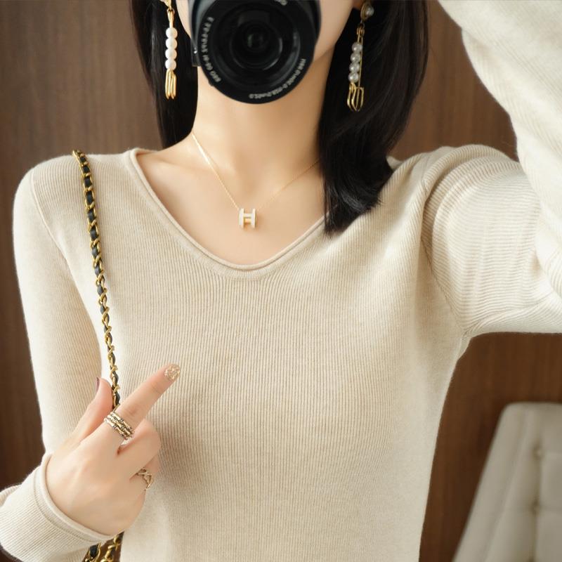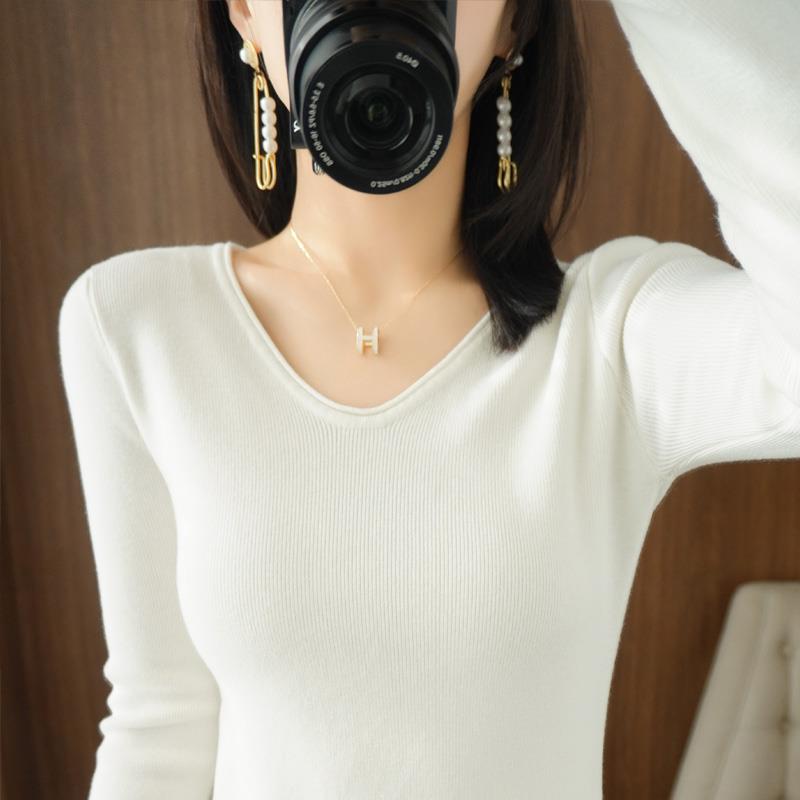 黑白色针织上衣1011k 套头内搭修身 秋冬女毛衣打底V领衫 2025新款