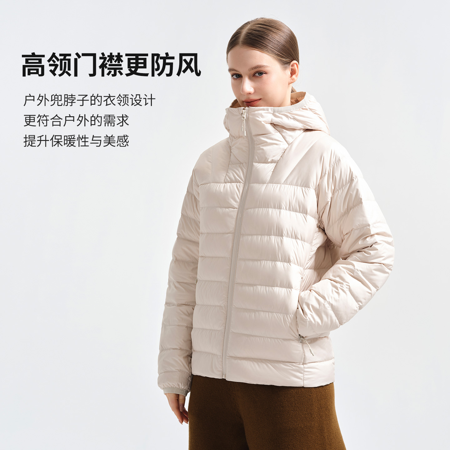 鸭绒保暖轻便休闲时尚 新款 棉袄Q 2025冬季 班尼路连帽羽绒服女短款