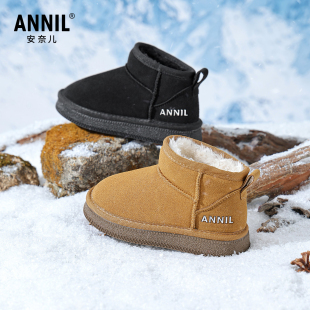 贝然童靴真皮皮鞋 女童马丁靴短靴中筒靴男童单靴皮靴女宝加绒棉靴