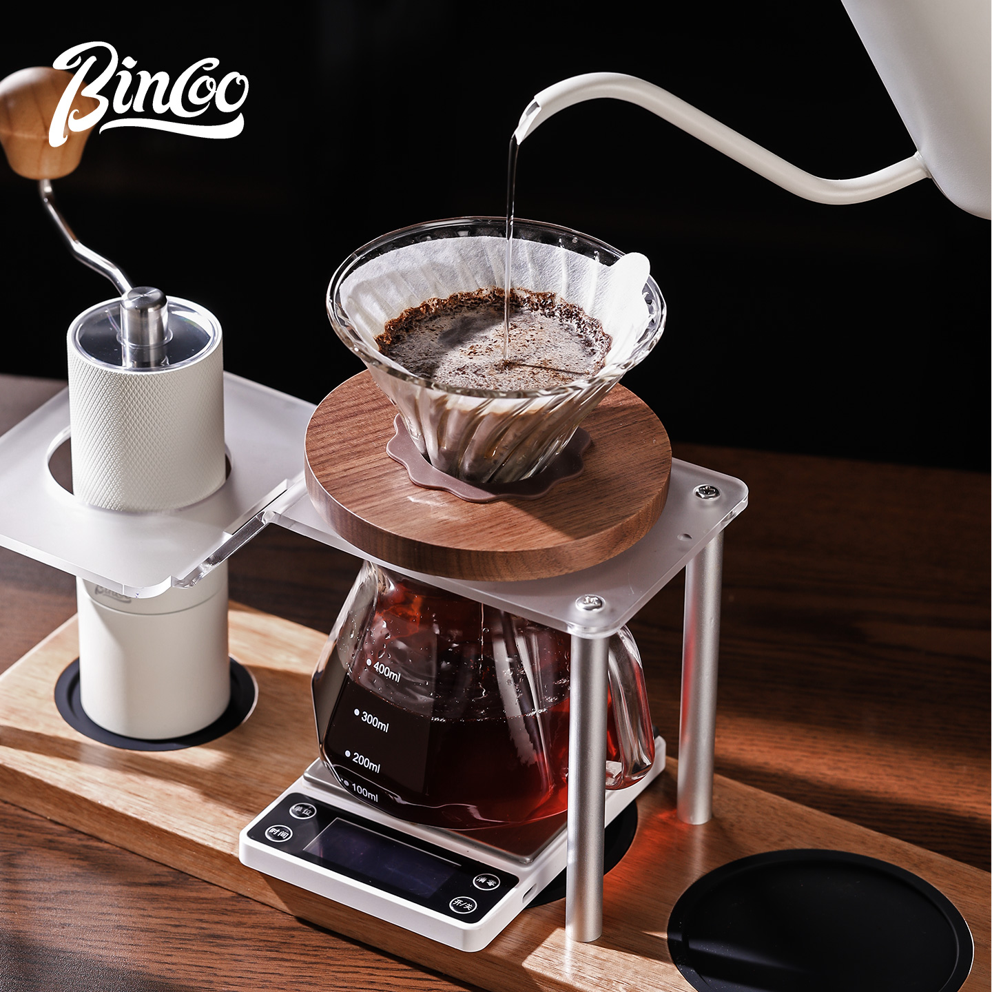 Bincoo手冲咖啡支架套装 手磨手冲壶玻璃滤杯磨豆机收纳组合家用