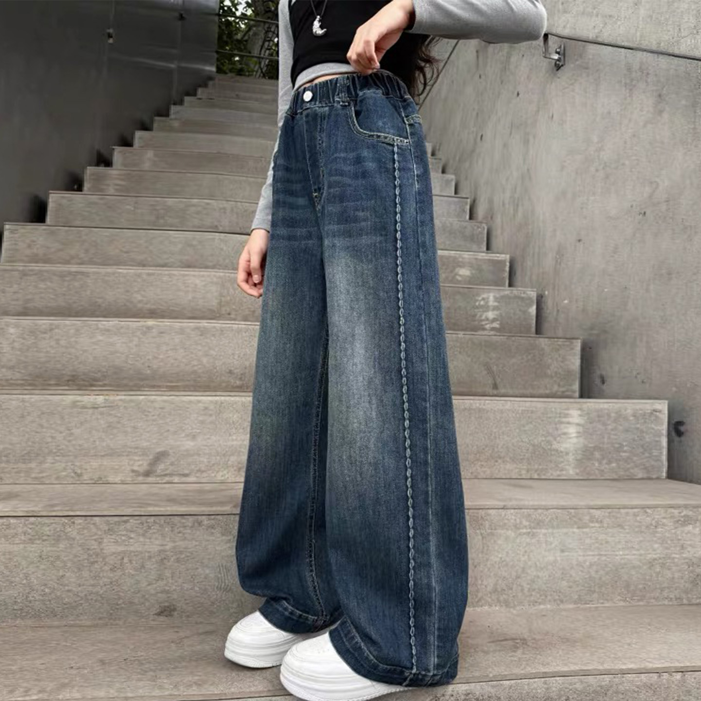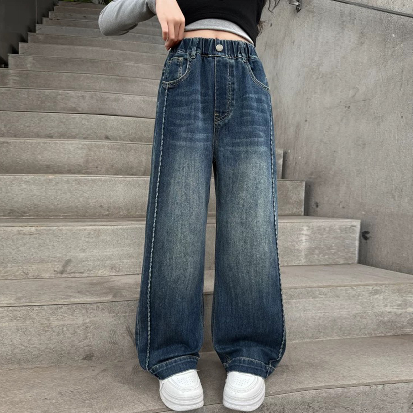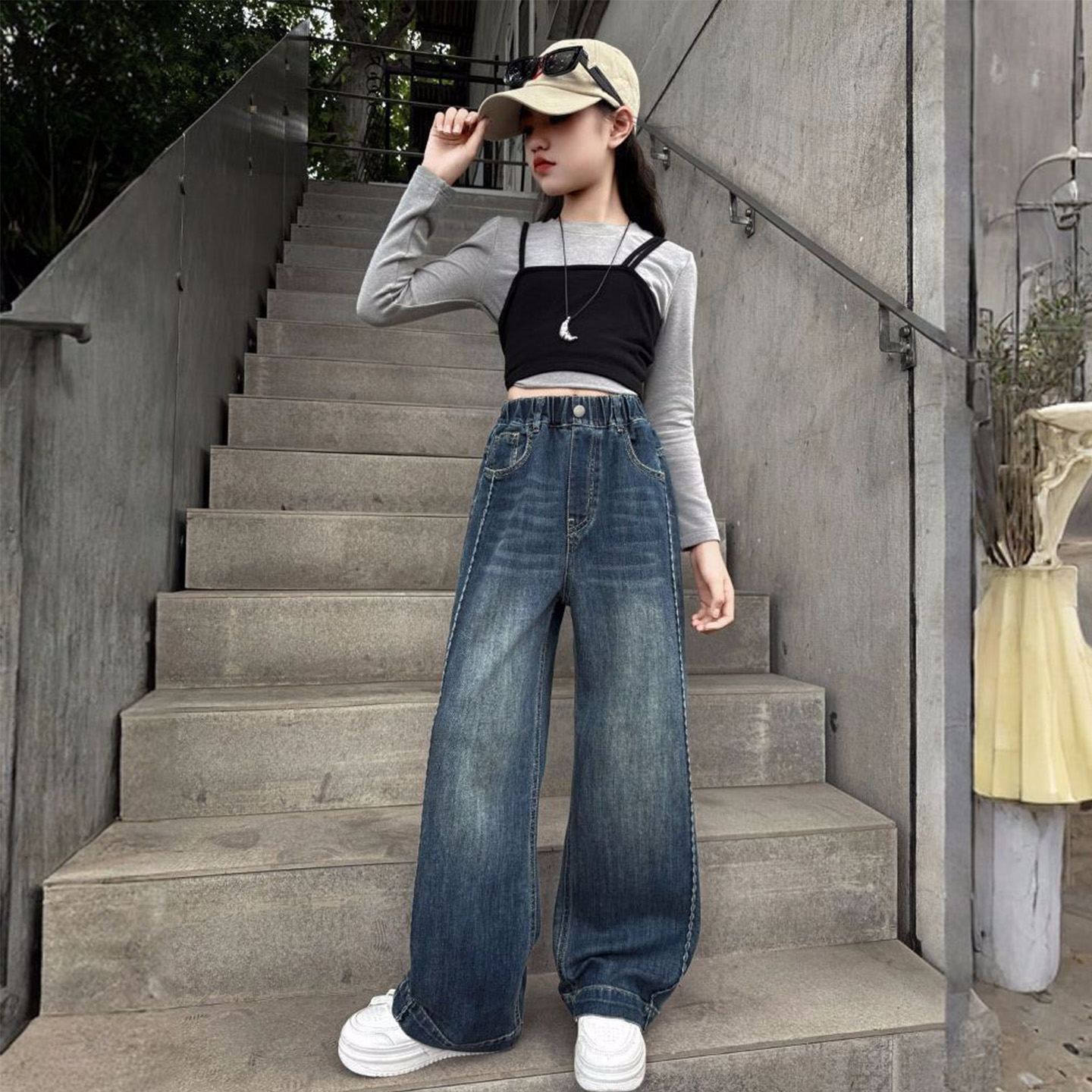 儿童潮流款 女童裤 休闲时髦百搭阔腿裤 春秋女宝宝牛仔裤 子2025新款
