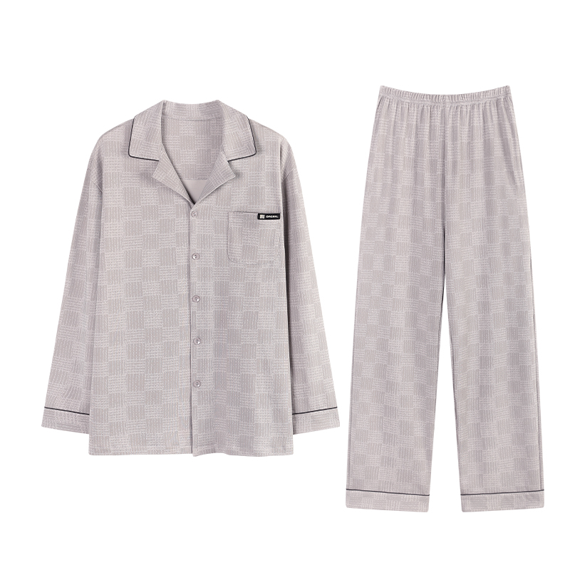 睡衣春秋季 可外穿家居服秋冬套装 华夫格纯棉长袖 大码 四季 猫人男士