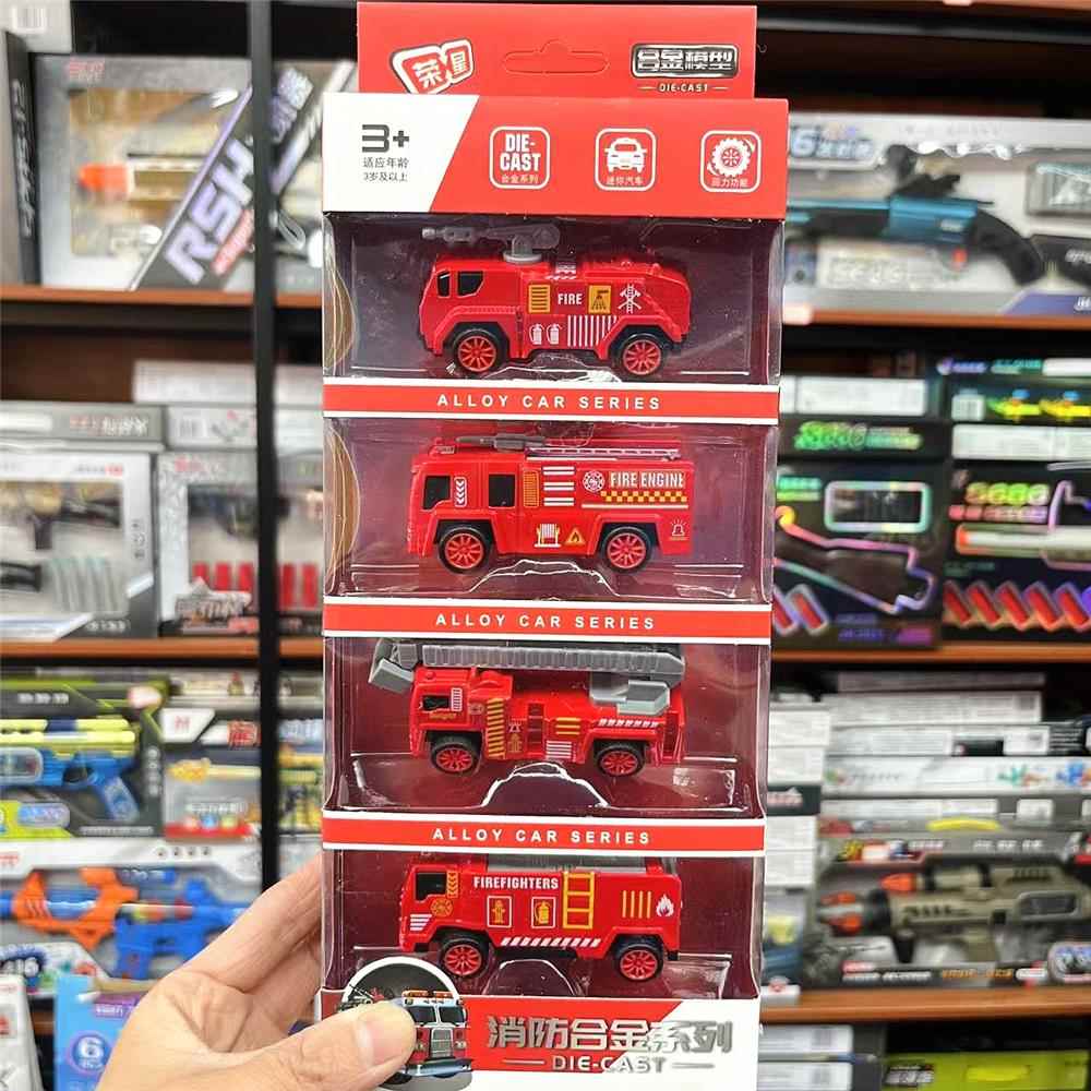 儿童玩具车彷真合金小汽车子模型男孩回力车云梯消防车工程车套装