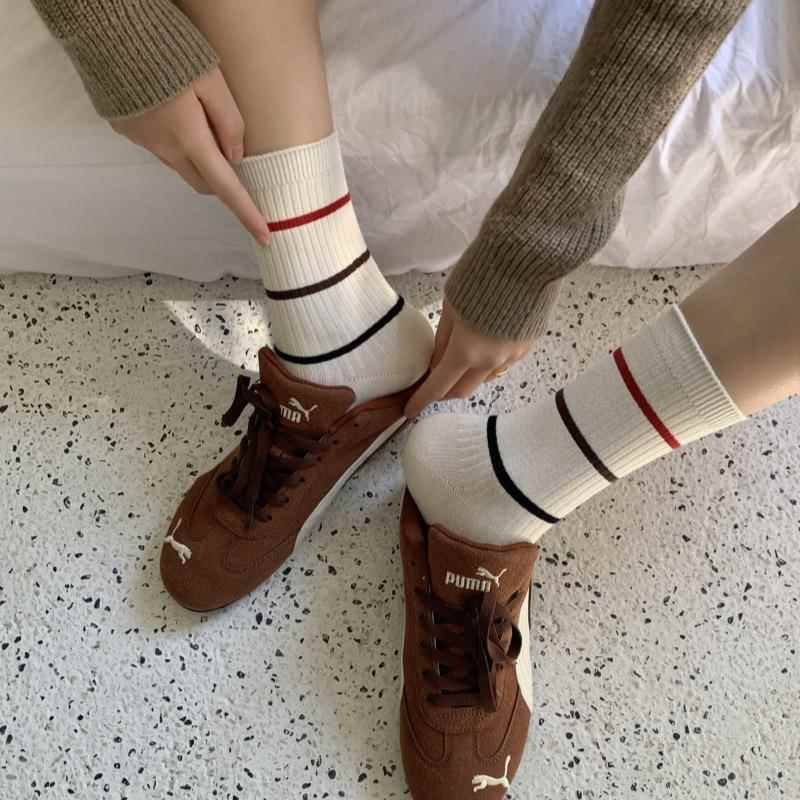 无骨长袜 中筒袜纯棉咖色月子堆堆袜配勃肯鞋 美拉德袜子女款 秋冬季