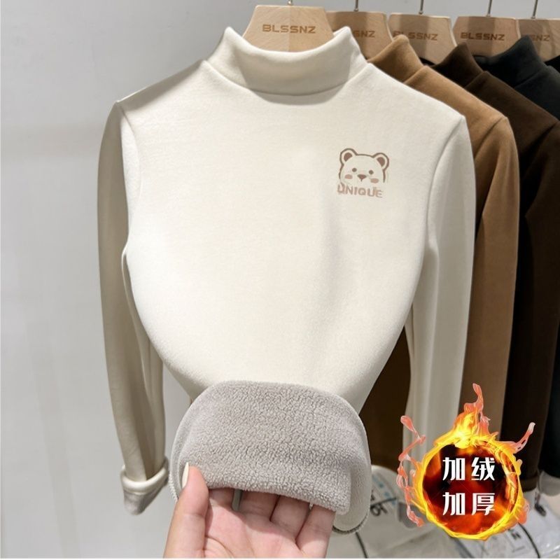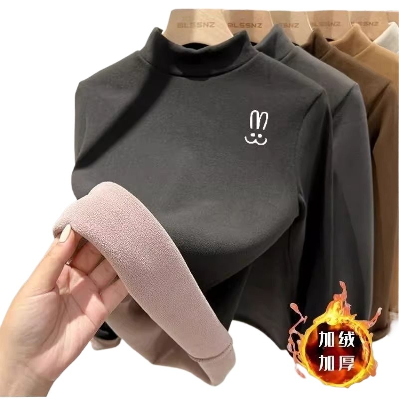 男女童加绒保暖洋气上衣 宝宝加厚半高领T恤冬韩版 儿童新款 打底衫