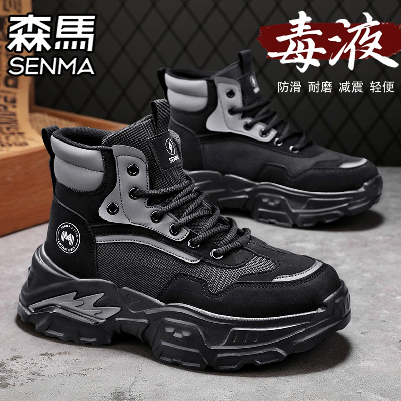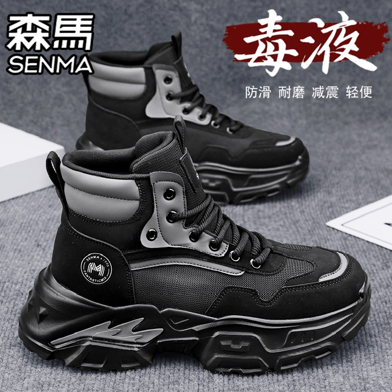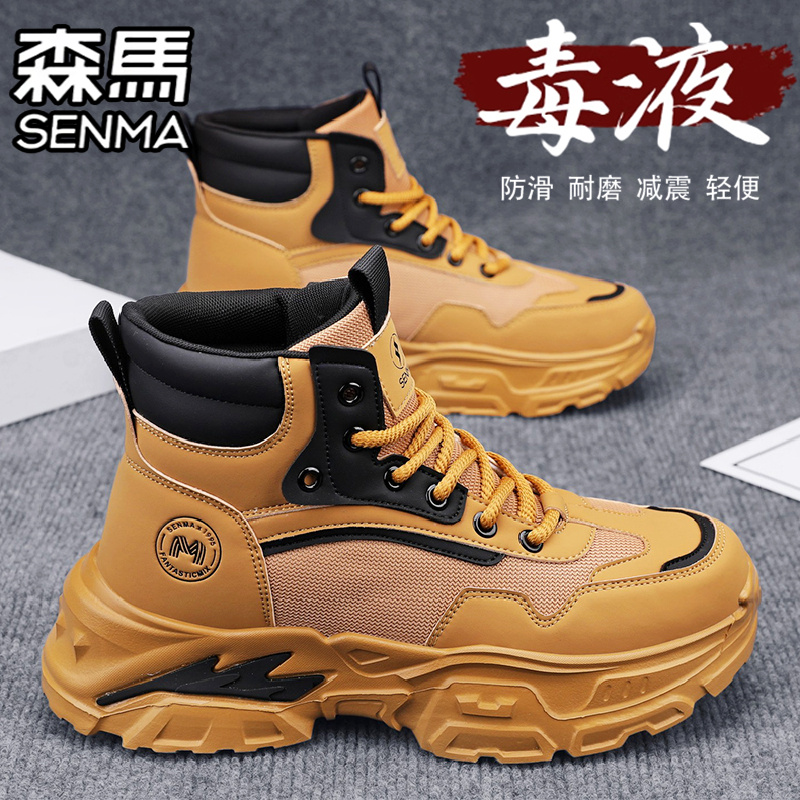 靴 高帮防水防滑劳保马丁靴户外登山厚底运动大黄工装 森马男鞋 秋季