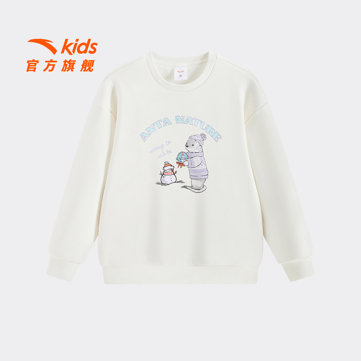 中国冰雪安踏儿童女童针织套头衫 亲肤中大童加绒卫衣 2025冬新款