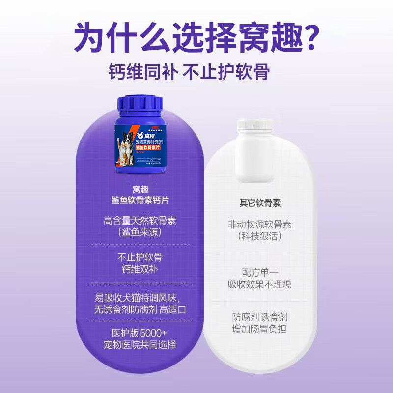 鲨鱼软骨素狗狗猫咪钙片健骨补钙保护关节幼犬老年犬泰迪成犬通用