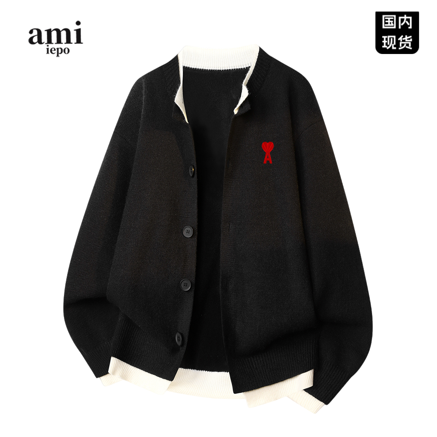 爆款 Ami 纽扣针织衫 毛衣男女情侣款 假两件外套 iepo旗舰店品牌开衫