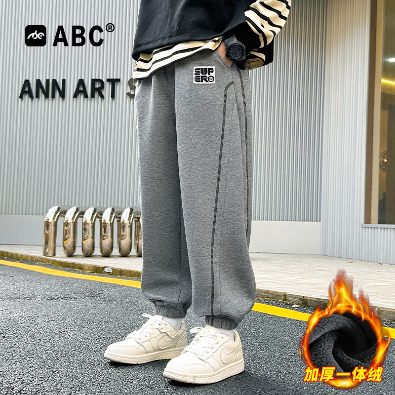 秋冬2025新款 加绒卫裤 大码 束脚男裤 回力休闲裤 宽松运动长裤 子男士