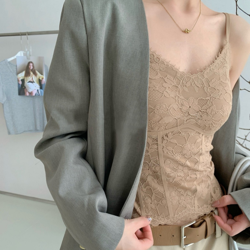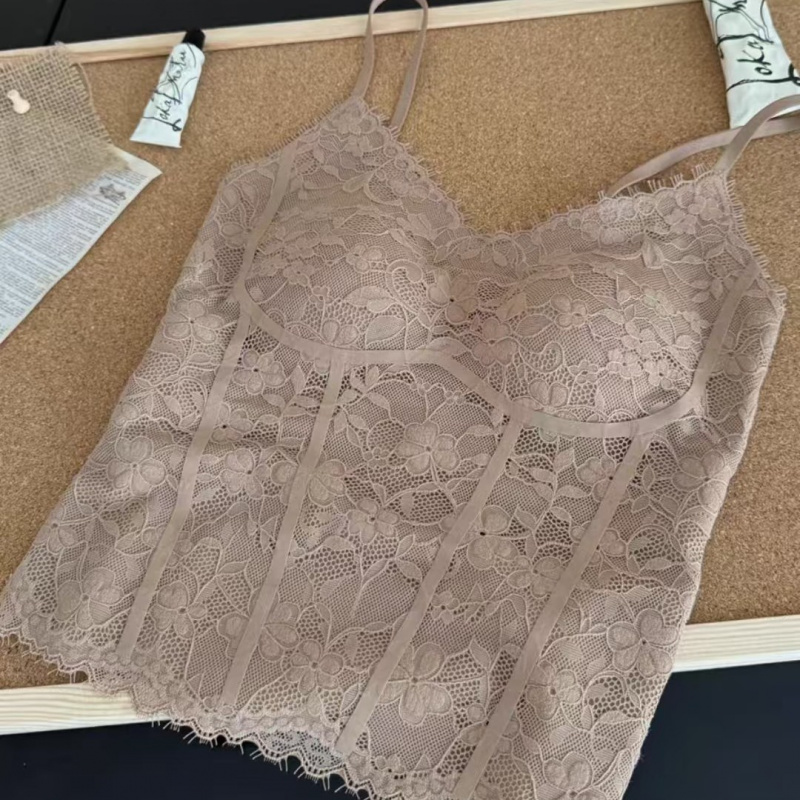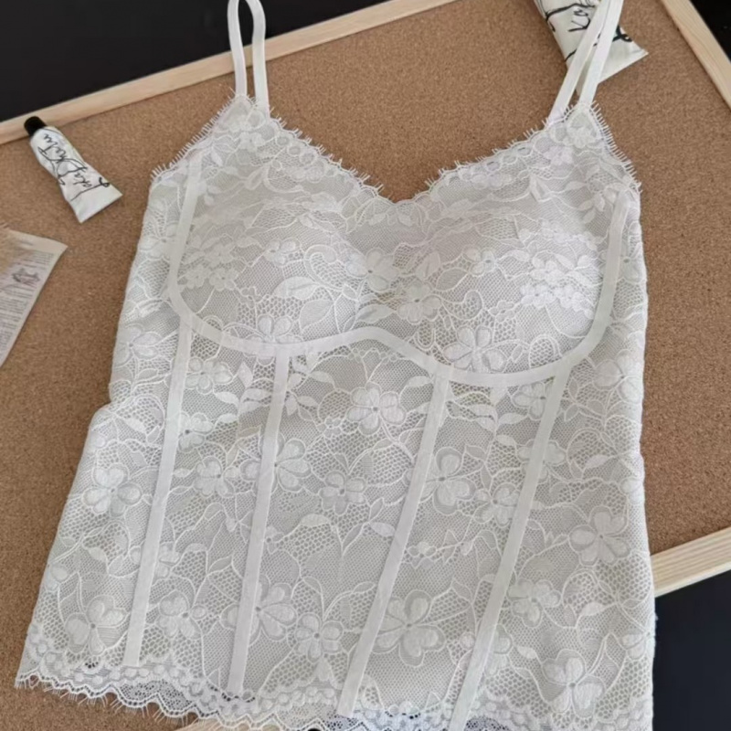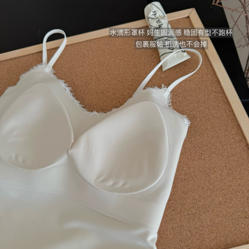 法式 内搭打底内衣外穿夏文胸 鱼骨线蕾丝吊带背心女带胸垫无痕薄款