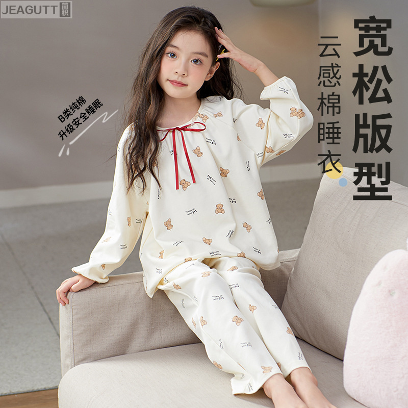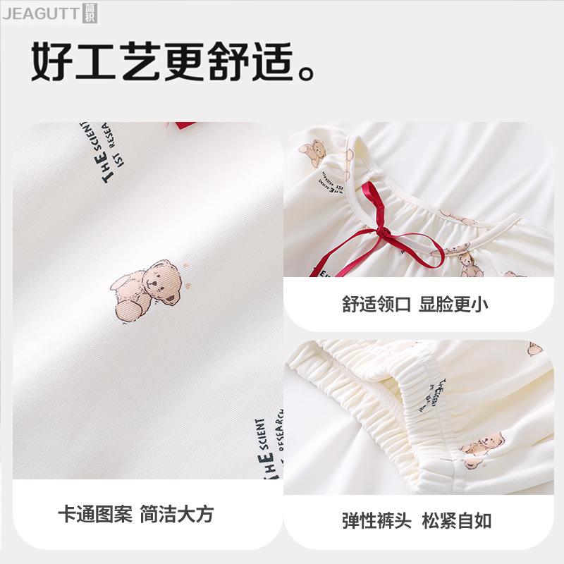 带胸垫防凸点全棉家居服套装 秋冬款 长袖 纯棉秋季 睡衣女士2025新款