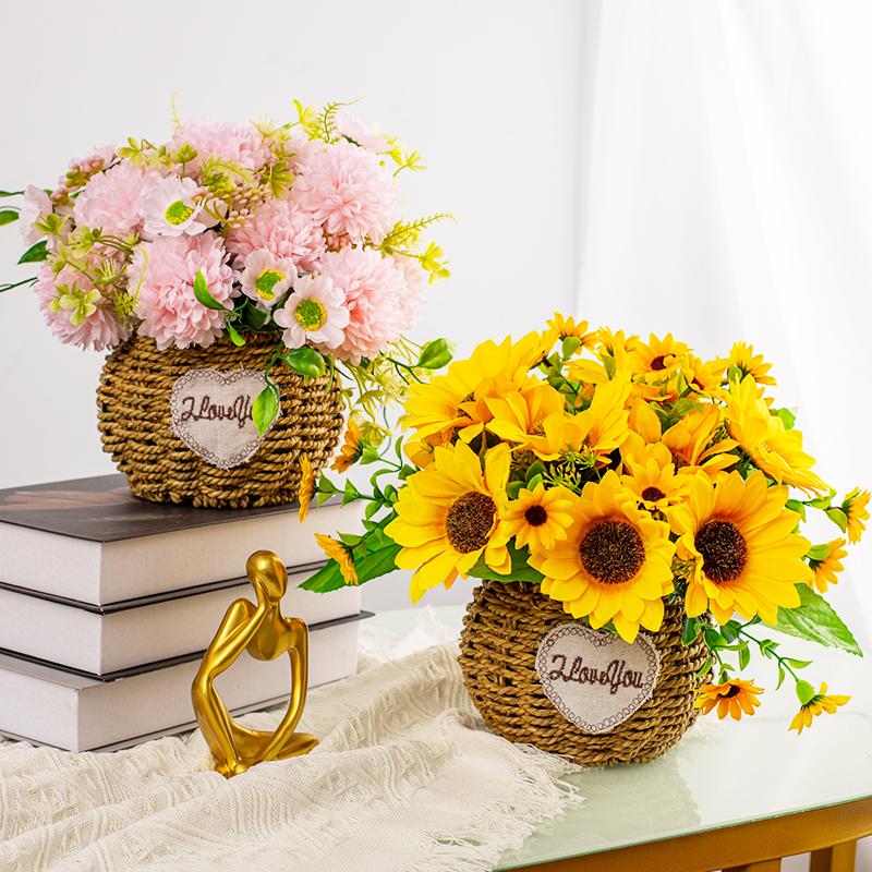 向日葵仿真花假花摆件客厅摆设插花餐桌装 饰家居花艺摆件绢花花束