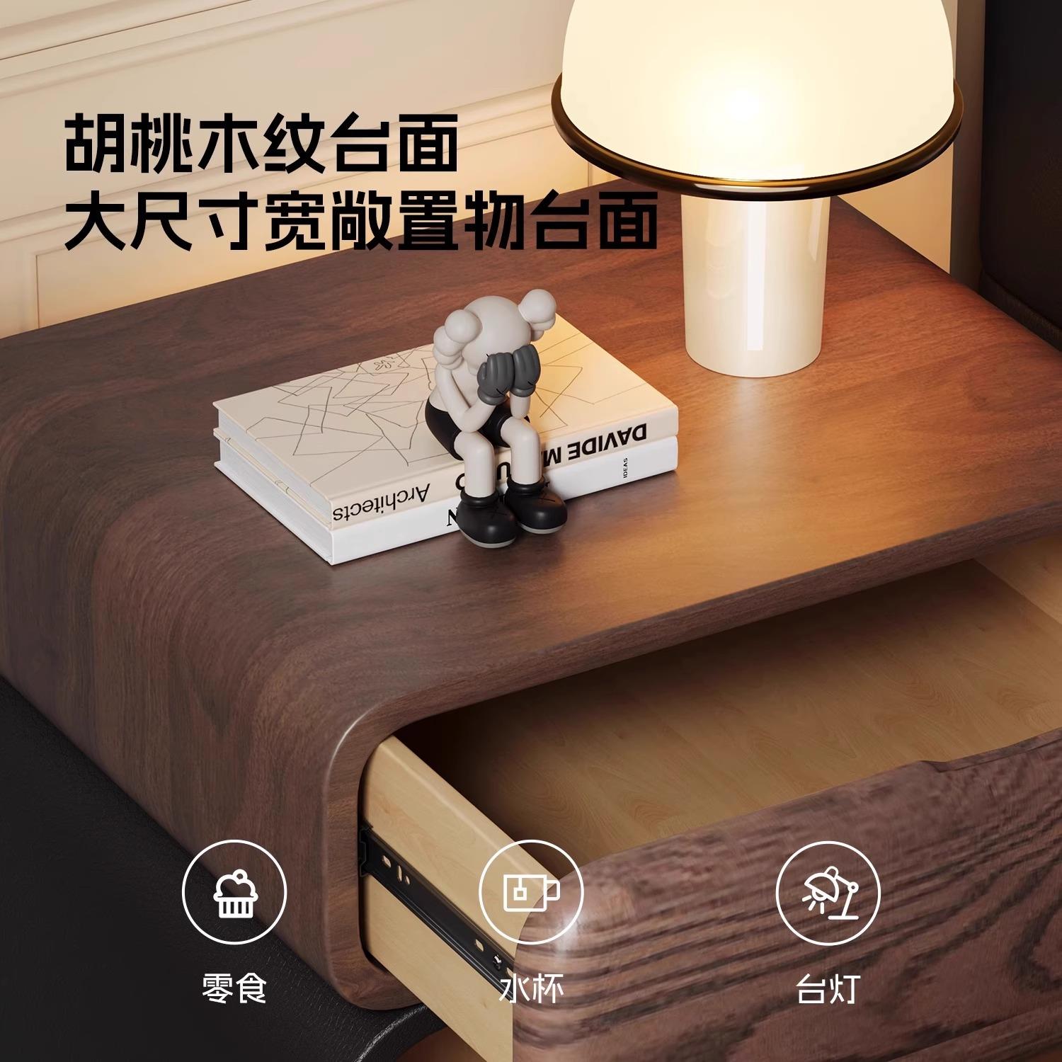 中古风实木床头柜简约现代2025新款 圆角家用卧室床边收纳柜子 爆款