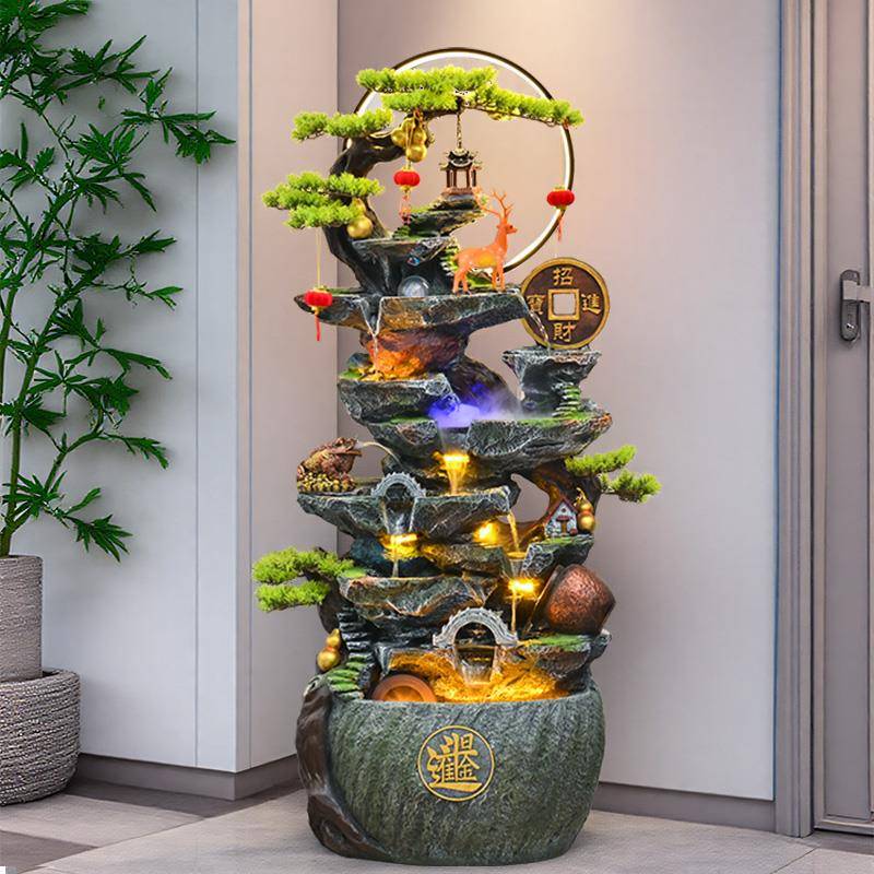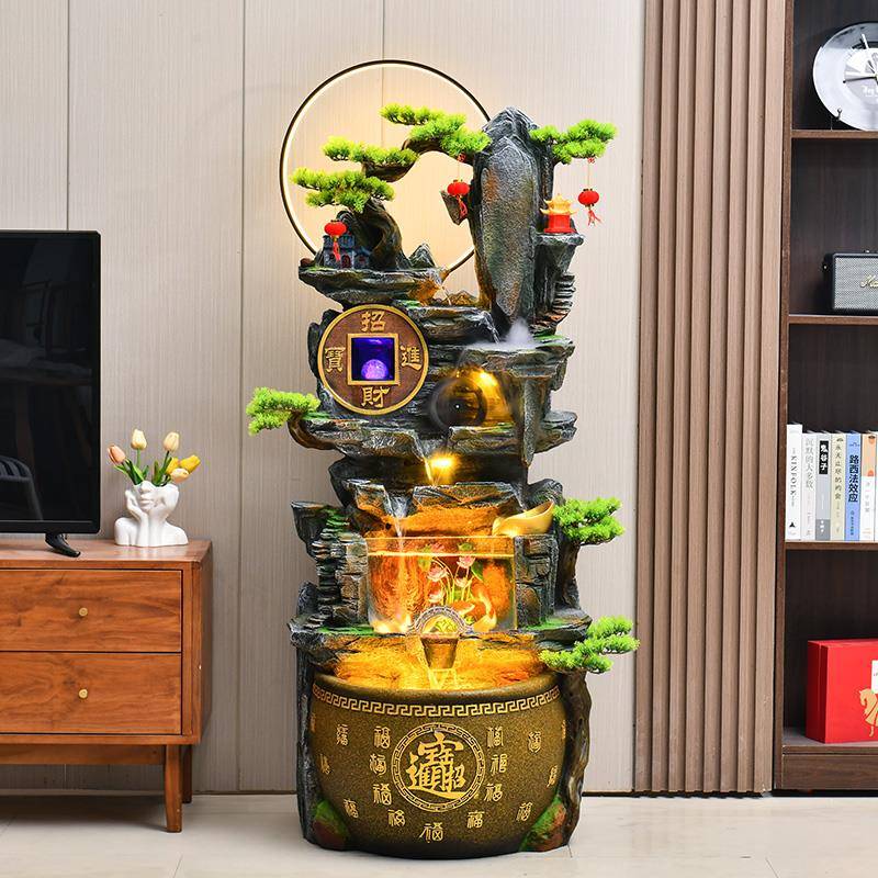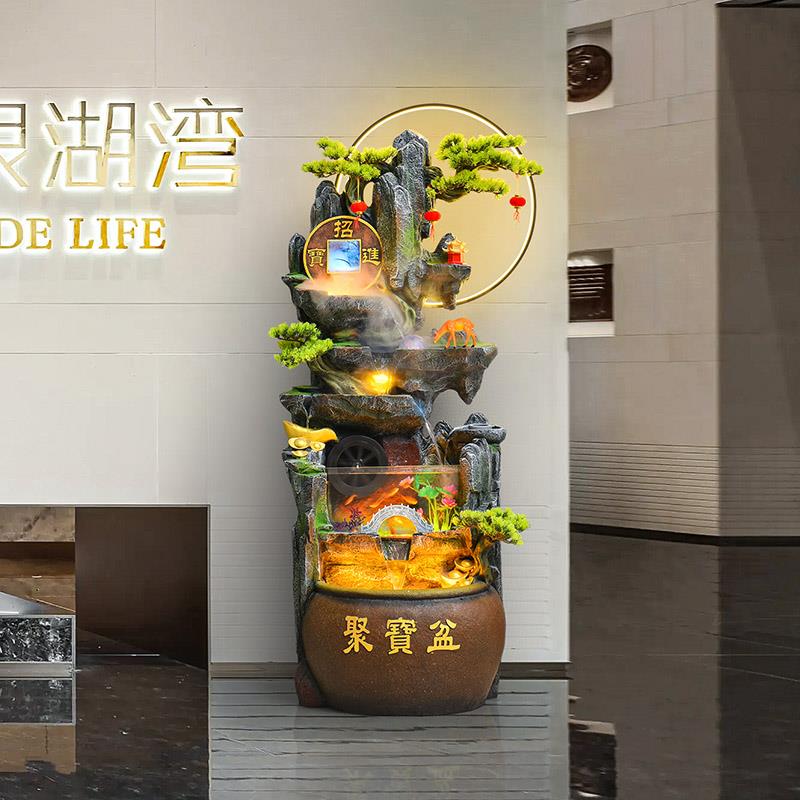假山流水摆件循环水喷泉风水轮招财生财落地客厅开业礼物高山水景