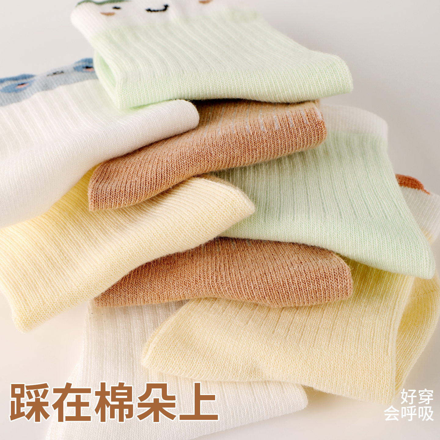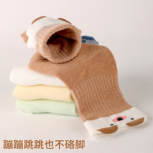 卡通动物儿童袜子春秋纯棉男女童无骨短袜纯色宝宝1 3岁中筒袜子