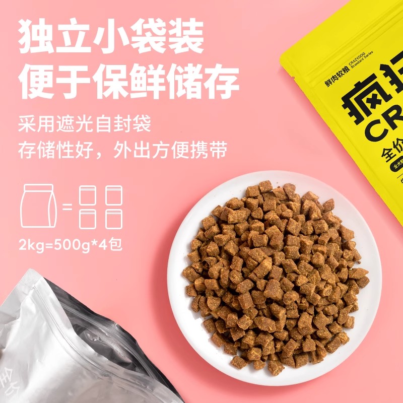 疯狂小狗鲜肉软粮狗粮泰迪比熊博美柯基小型犬成犬幼犬孕犬专用粮