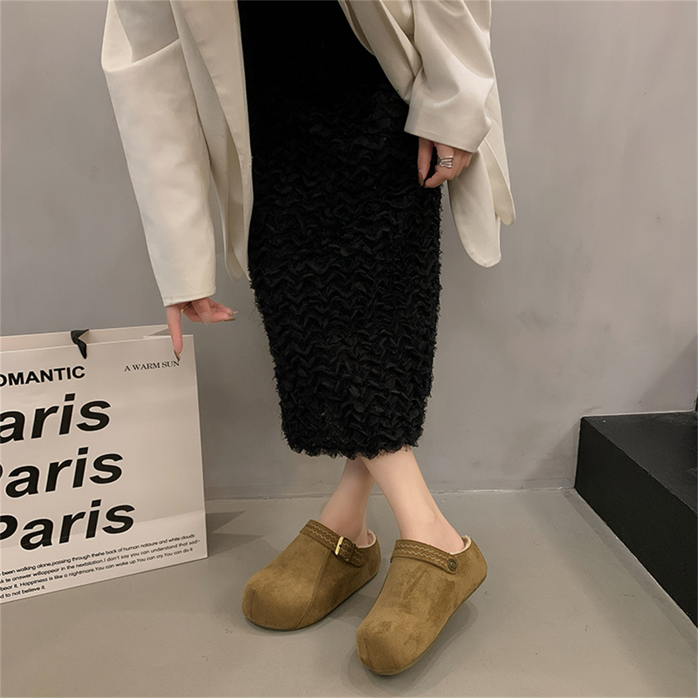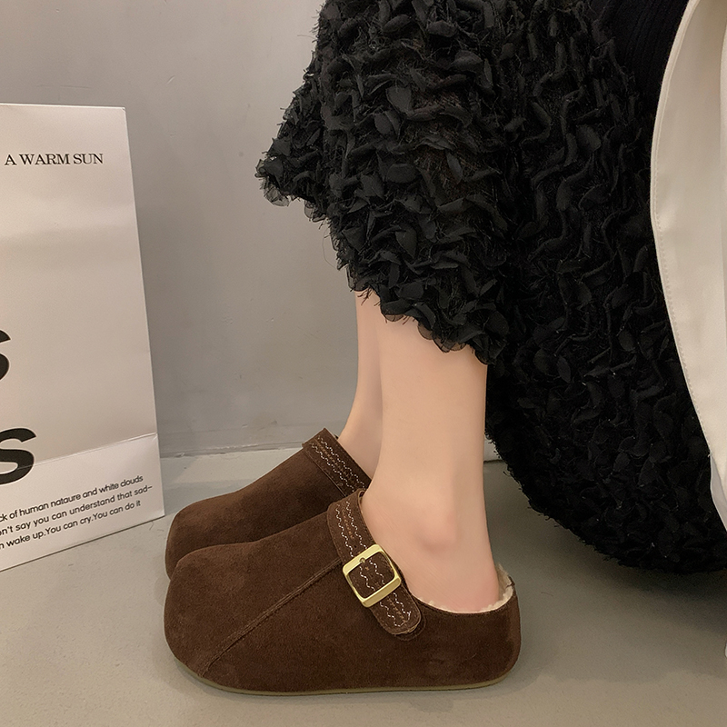 女2025秋季 加绒保暖勃肯鞋 新款 拖鞋 网红爆款 小个子增高包头半拖鞋