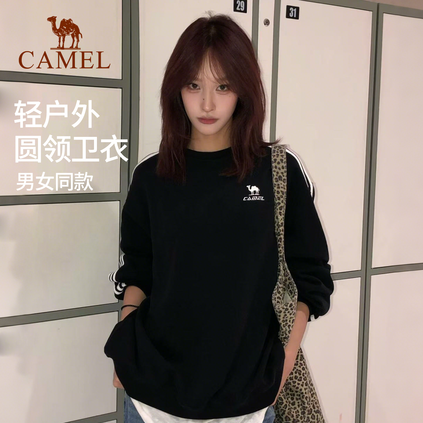 T恤 男女情侣黑色套头上衣宽松休闲长袖 骆驼1930圆领卫衣秋季 新款
