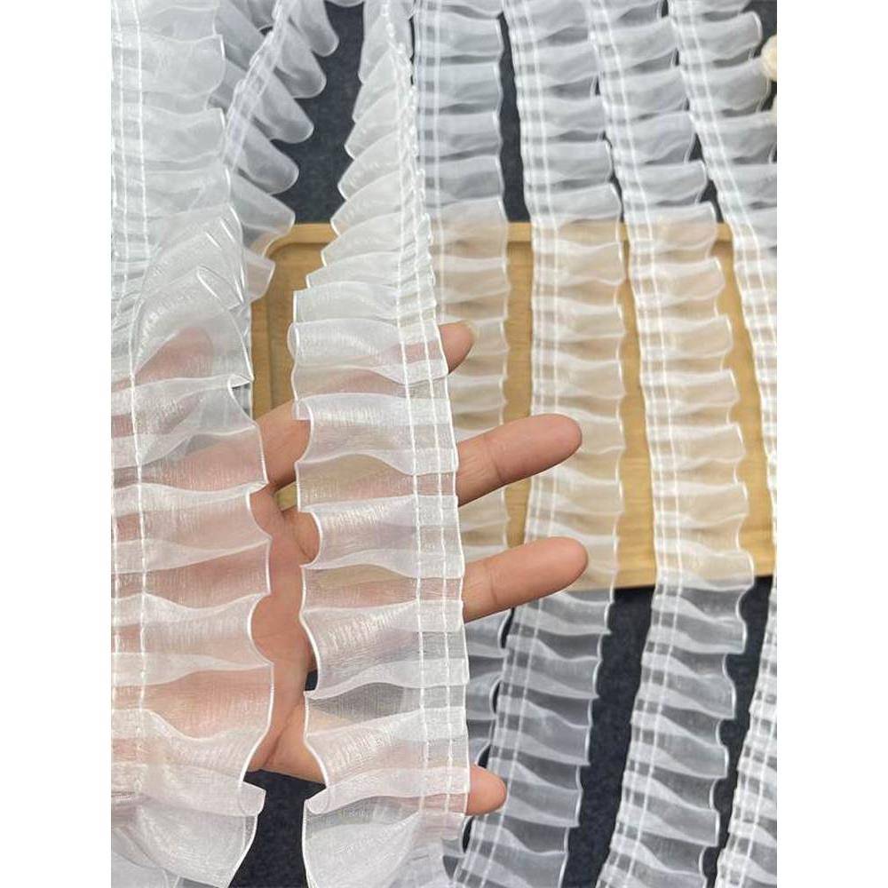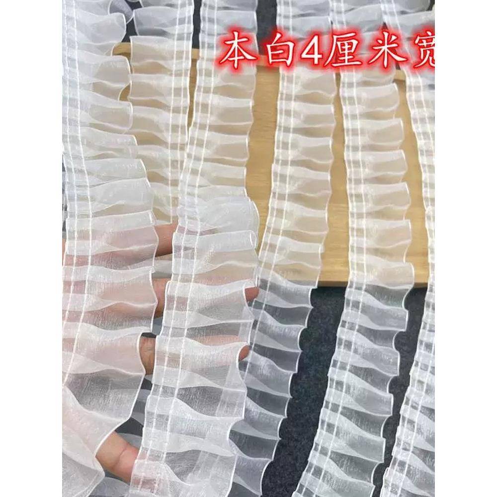 雪纺纱花边辅料裙子边袖 饰 口边领口边褶皱蕾丝雪纺布条diy手工装