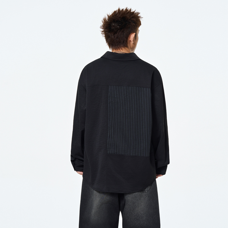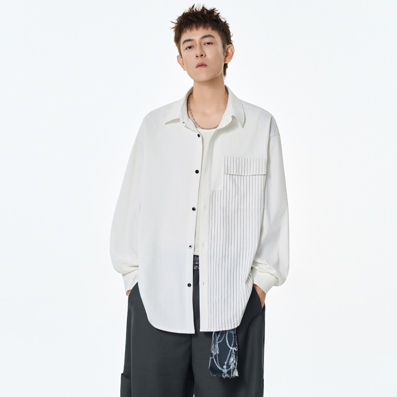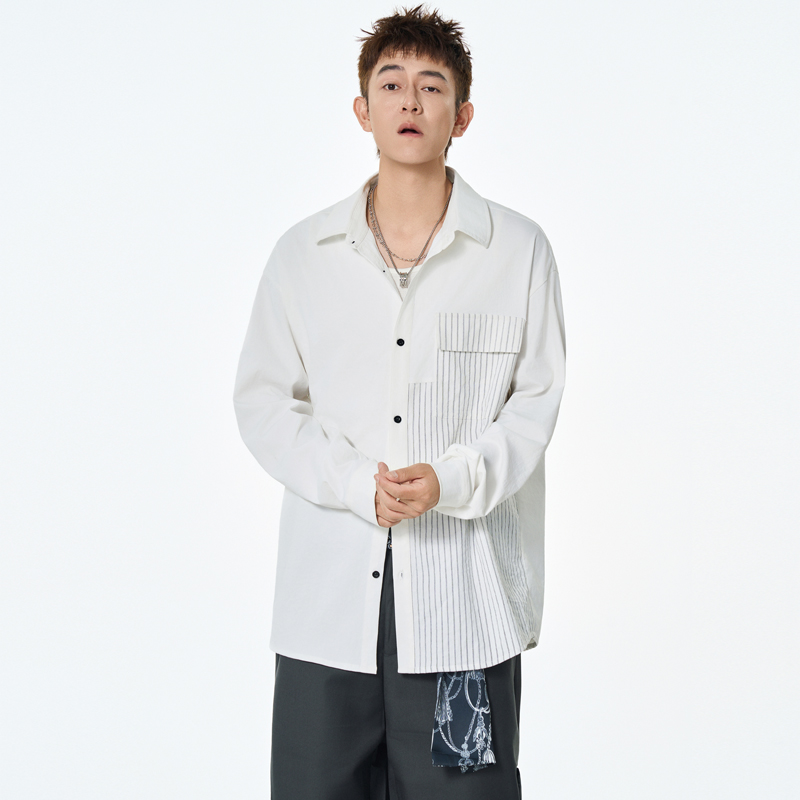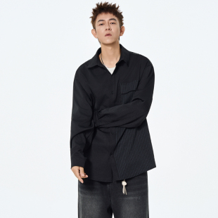 情侣潮流百搭翻领外套男女同款 美式 新款 男女秋季 复古条纹休闲衬衫