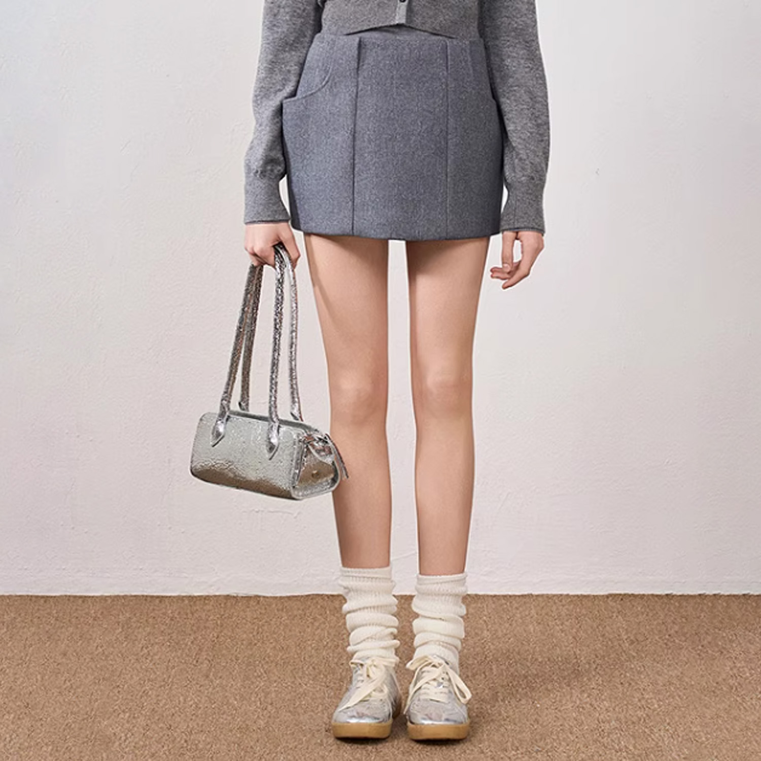 RUISHI芮时 可机洗60支羊毛知识分子风A字遮肉显瘦百褶半身裙女冬