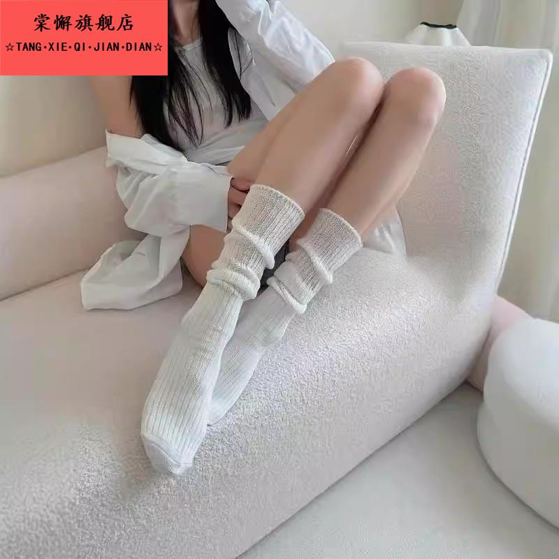 甜美风糖果色袜子女ins潮堆堆袜2025春季 纯棉透气粉色中筒袜 新款