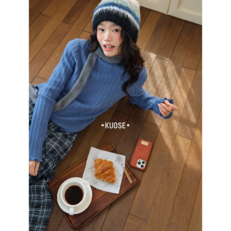 叠穿木耳边内搭毛衣 新款 阔色杏色半高领针织打底衫 女2025秋冬季